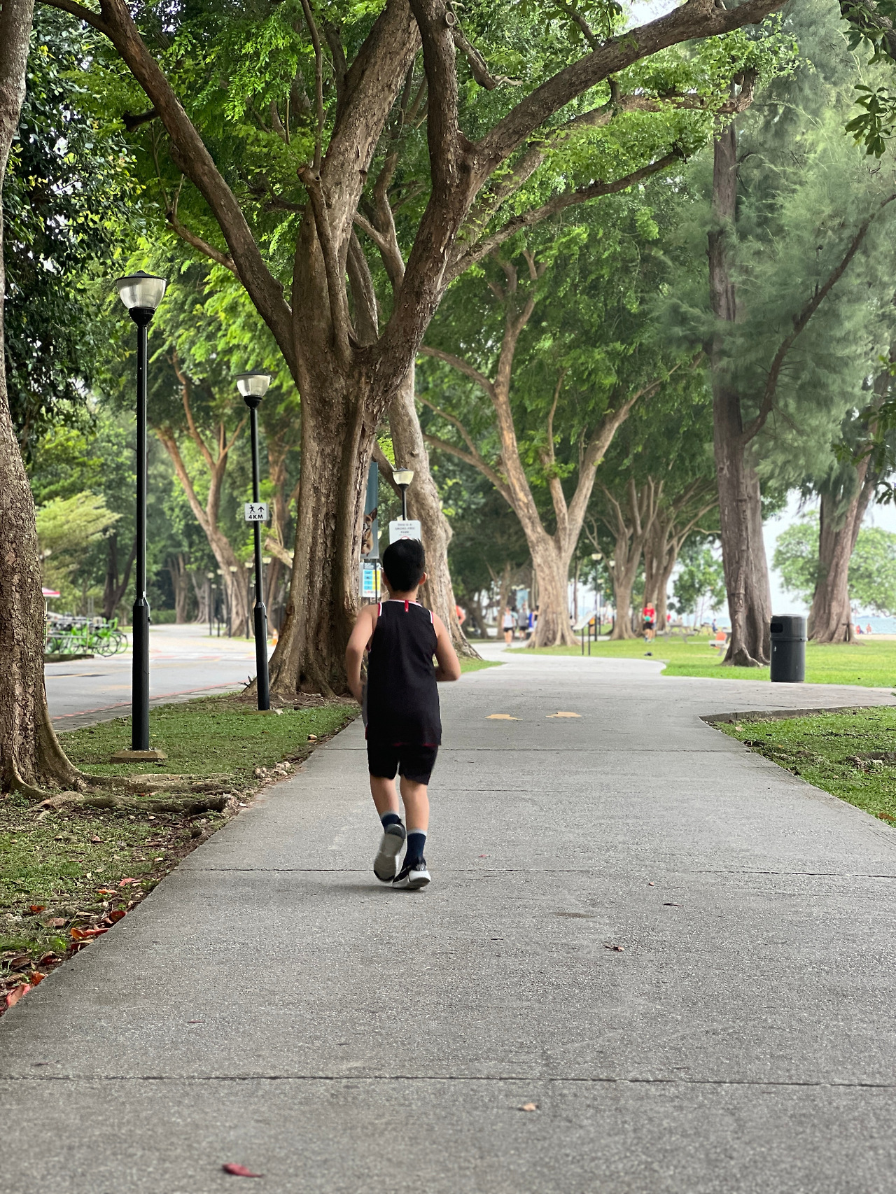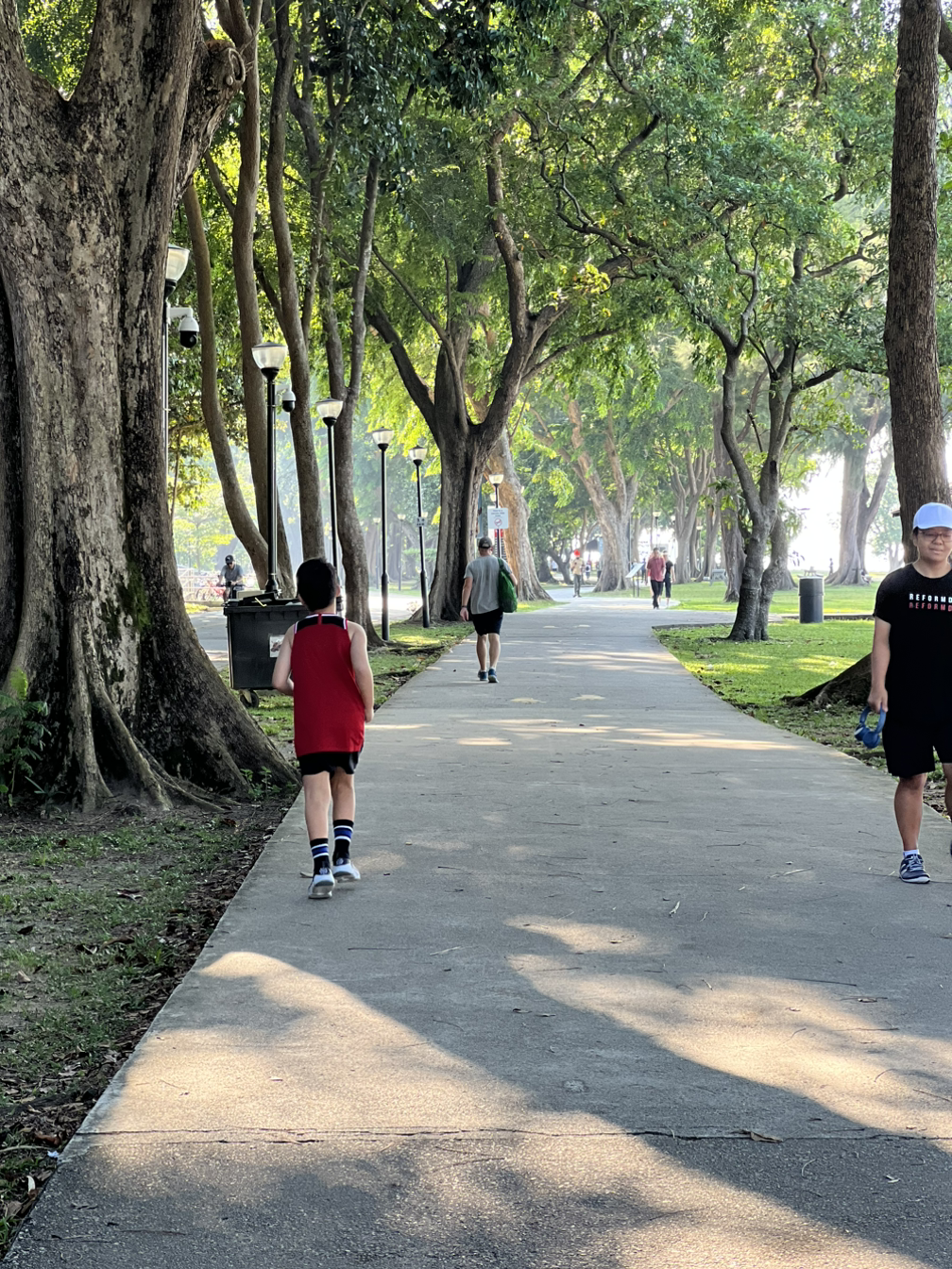 그 옆으로 유모차를 끌며 경보로 걷는 부부