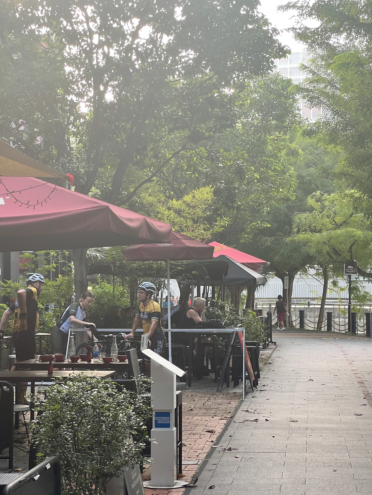 자전거를 타다가 브런치가게에 들어가 모여 앉는 사람들
