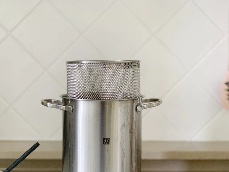 아스파라거스팟이라고 불리우는 너무 예쁜 길쭉이 냄비..아스파라거스를 데치는 용도이긴 하지만 난 육수를 내는 용도로 더 많이 쓰고 있다. 필요한 재료들을 손질해서 채에 넣고 물을 채워 끓인 후 채만 들어서 냄비에 건더기는 건져낸다. 파스타를 삶기도 하는데 얇고 긴 스파게티면은 여기에 삶으면 채에 면이 다 끼는 관계로 숏 파스타들만 삶는다.