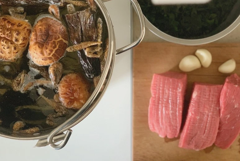 고기와 채소가 익으면서 생기는 수분들이 찜기아래로 빠지면서 육수 맛도 더 좋아진다.