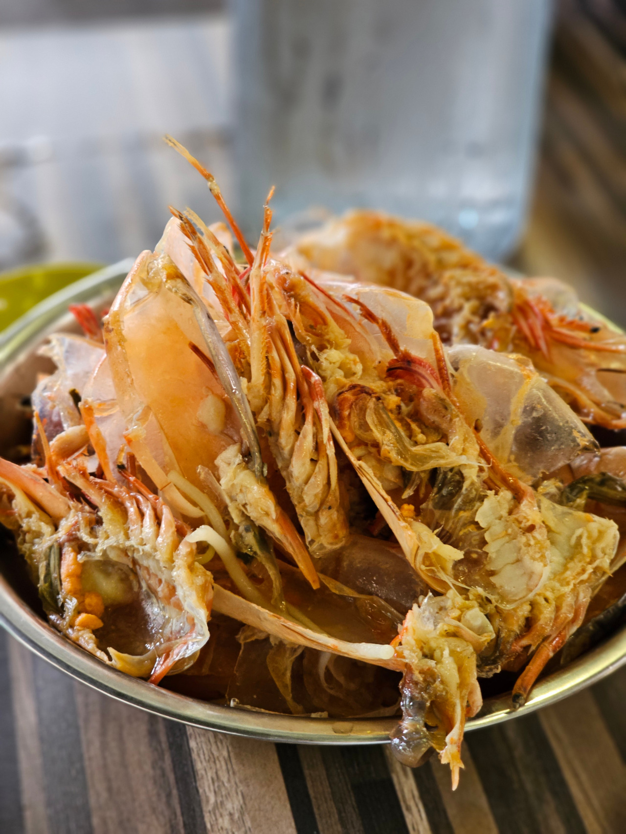 이렇게 주문을 하고 자리로 오면 어묵부터 서빙이 된다. 어묵을 맛있게 먹고 있으면 드디어 새우국수가 나온다. 국수가 나오기 전까지 튀김을 먹었으니 개운하게 국물먼저 떠 먹어봐야한다. 돼지갈비, 돼지뼈, 돼지꼬리 등과 새우머리, 껍질, 꼬리, 그리고 후추, 향신료를 사용해서 만드는 국물인데 맛이 정말 진하고 시원하다. 돼지만 썼다면 기름질 수 도 있는데, 새우를 같이 써서 그런지 개운하면서 고기육수 맛도 나고.. 아무튼 먹어봐야 안다. 술 먹고 먹으면 진짜 해장이 제대로 될 것 같은 맛이다.
