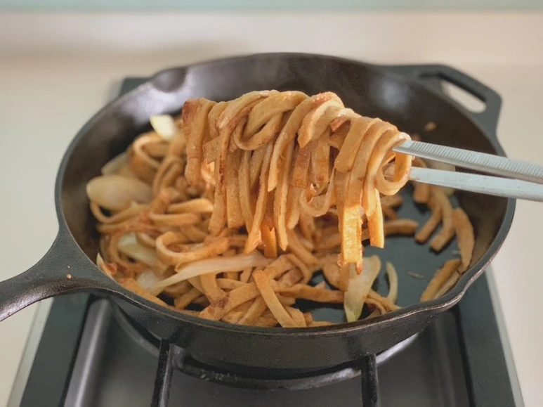 면을 볶거나 우엉채, 어묵, 나물처럼 긴 재료를 볶을 때 이용한다.