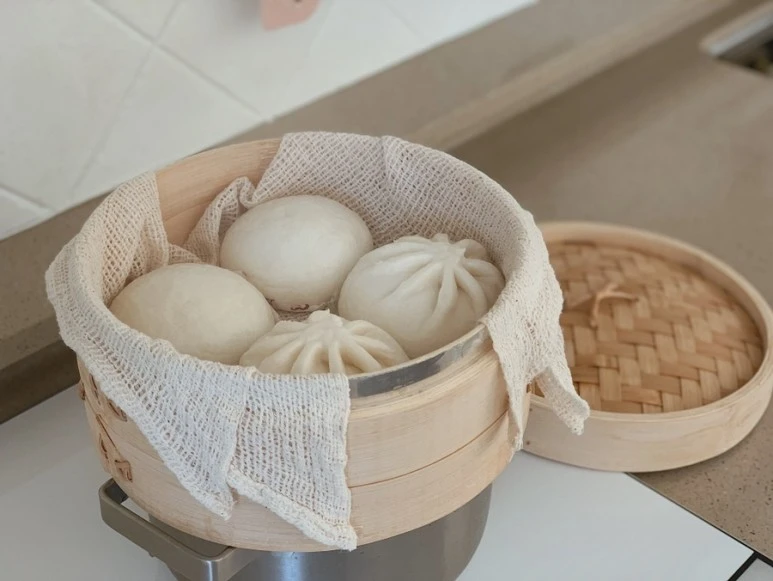 대나무 찜기는 자주 사용하지는 않지만 필요한 도구이다. 만두를 찌기도 하고 호빵을 찌기도 한다. 때론 옥수수를 찌기도. 물을 끓이는 냄비가 세트인 경우도 있지만 찜기만 사고 사진처럼 알맞은 냄비 위에 올려주어도 된다. 디자인 자체만으로도 기분이 좋아지고 마음이 따뜻해지는 도구이다.