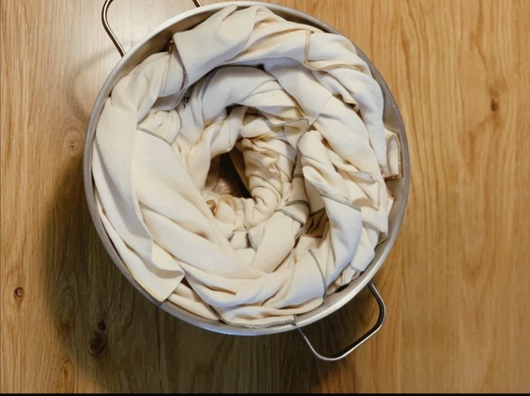 물기를 닦다 보면 2겹은 흡수력이 많이 아쉽다. 소창행주를 사용하기 전에 꼭 거쳐야 할 일이 있다. 바로 정련과정이다. 이 과정이 귀찮을 수 도 있지만 정련 과정을 거치면서 점점 더 뽀얗게 하얘지는 행주를 만나는 건 살림기행의 힐링이다. 천연소재인 소창원단은 원단 생산 과정에서 풀을 먹여 만들기 때문에 이 풀기를 꼭 제거해 주어야 행주로서의 역할을 한다. 풀기 제거 없이 그냥 사용하면 물기 흡수는 전혀 되지 않기 때문!