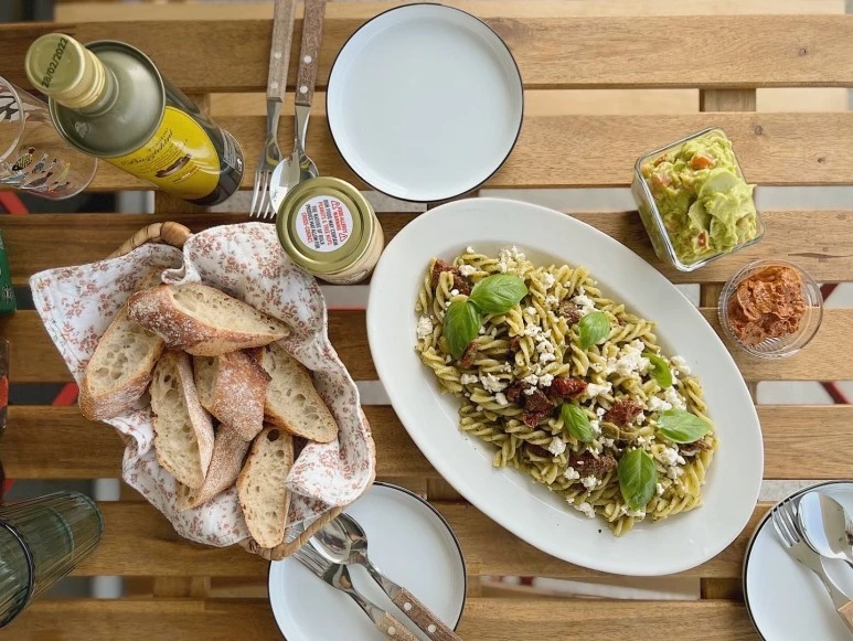 냄비를 집는 그 순간에도 부드러운 원단의 촉감에 기분이 좋아지고, 더 예뻐진 바스켓에 담긴 빵과 냄비아래에 살짝 삐져나오는 예쁜 패턴이 식탁을 더 예쁘게 만들어준다.