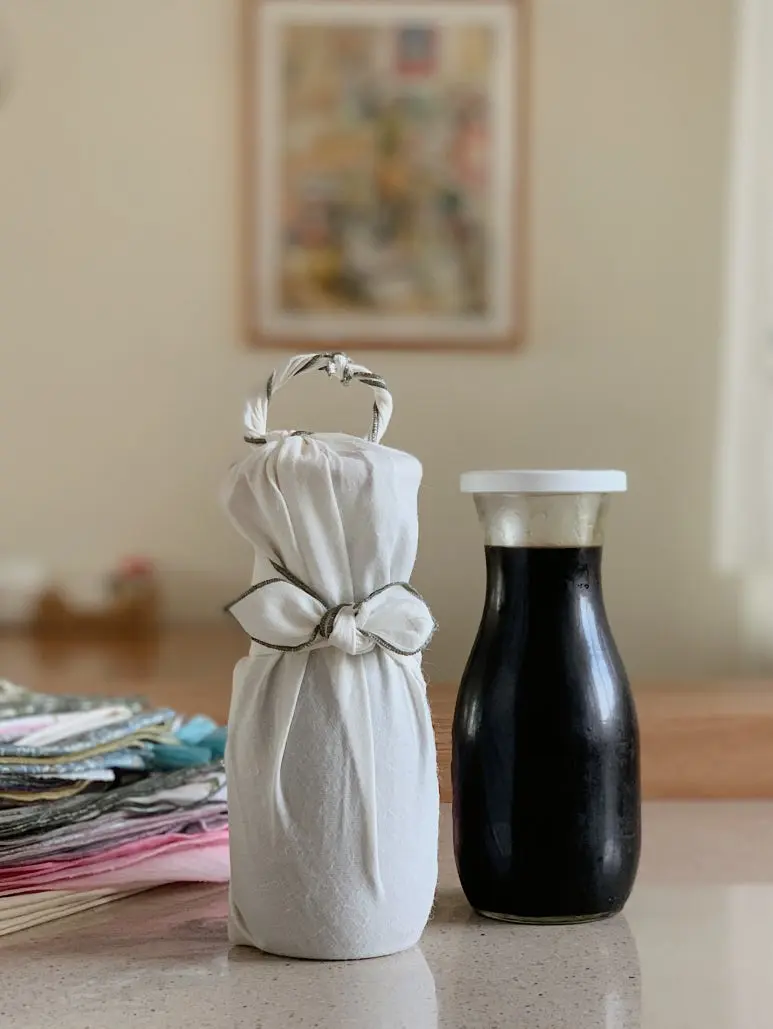 소창행주는 때론 보자기로 변신하기도 한다. 맛간장을 만들어서 새 소창행주로 예쁘게 포장해서 지인에게 건네기도 하는데 그냥 편하게 나누려고 만든 맛간장이 특별한 선물이 되는 순간이다. 받은 사람은 행주로 사용할 수 있으니 더없이 좋은 포장지이다. 이런 한순간 한순간의 작은 힐링들이 모여서 살림의 재미를 더해준다.