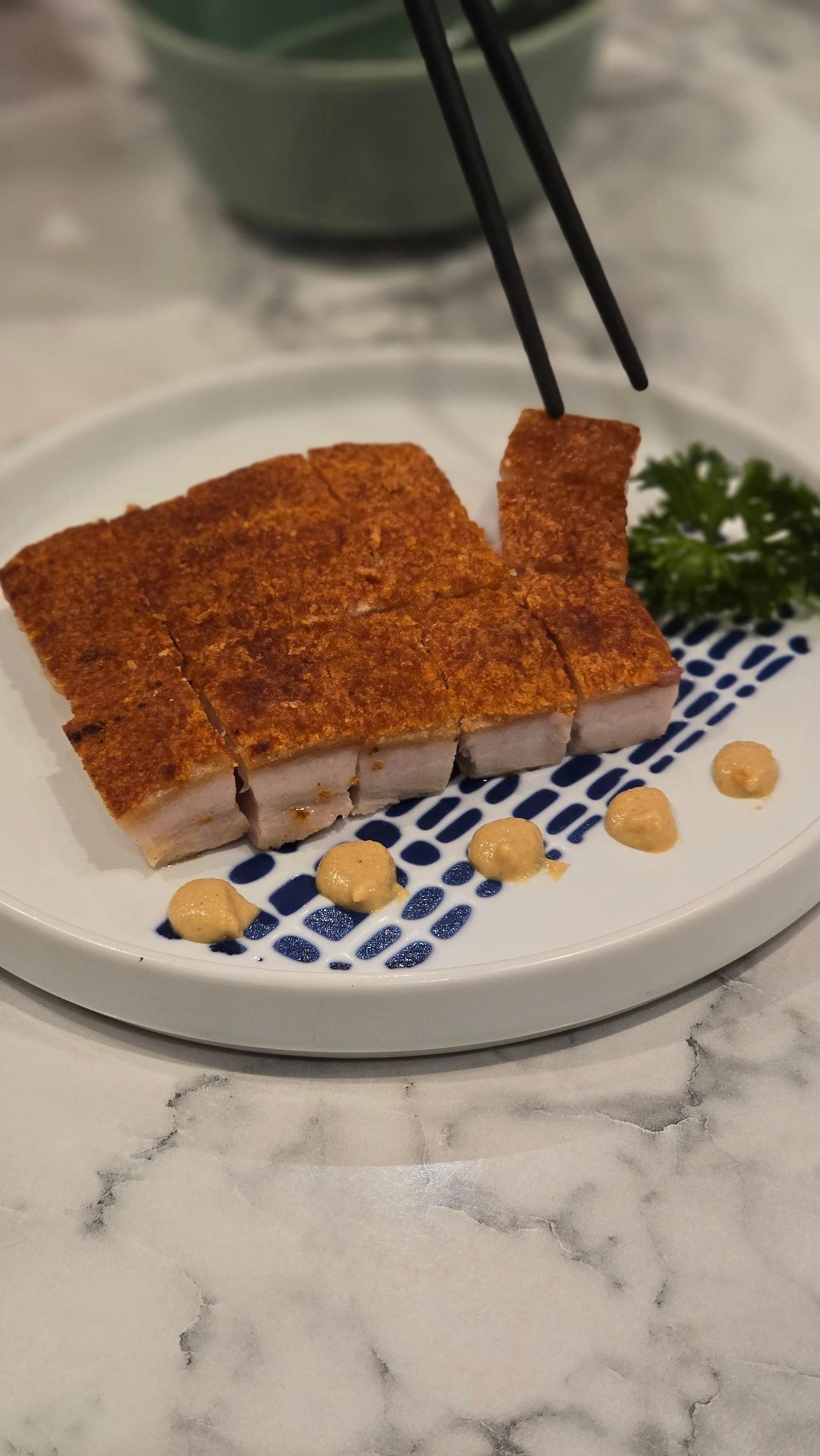 - 애피타이저는 크리스피 삼겹살(Cracking Pork Belly)