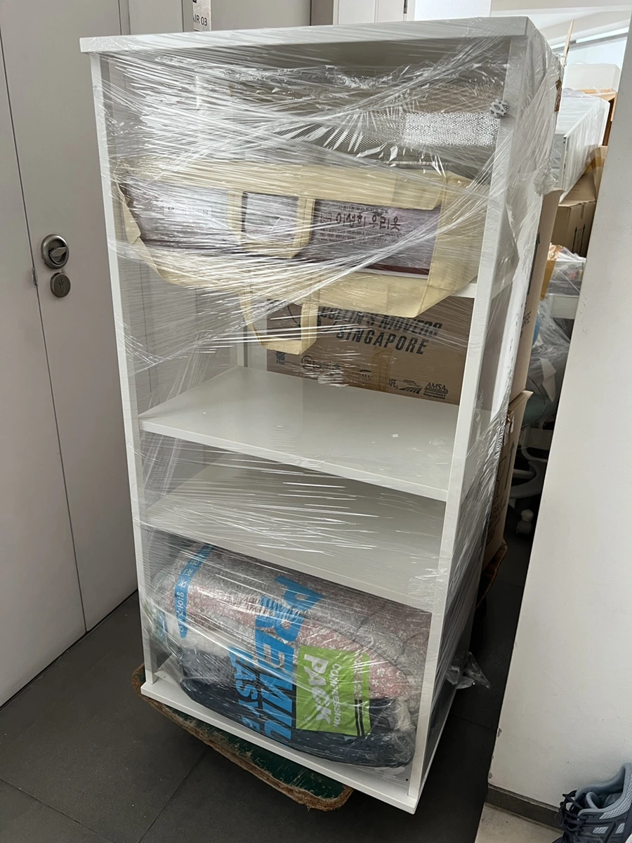 수납되어 있는 물건들을 그냥 통째로 랩으로 칭칭 감아 봉해버린다. 아 신박해!!
