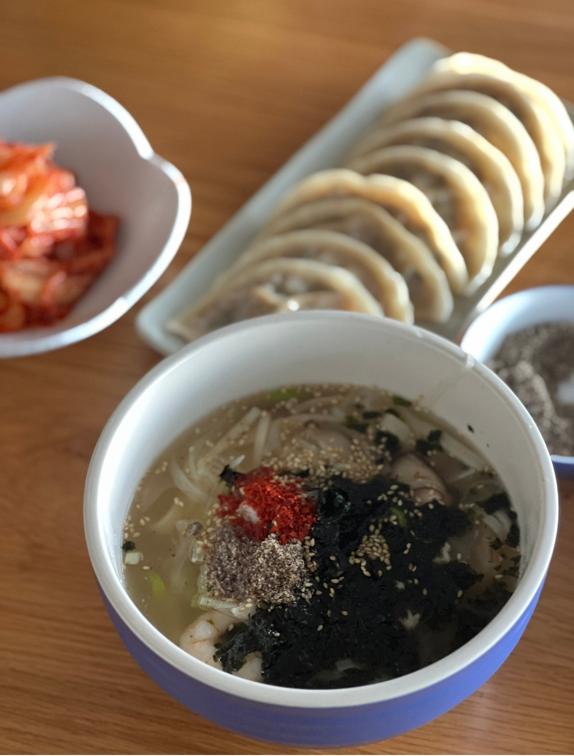 주말에 차를 몰고 육로로 국경 넘어 말레이시아로 건너갔다가 한국 만두집 '가메골'에서 사 와서 얼려둔 만두도 꺼냈다. (우린 한 달에 한 번꼴로 말레이시아에 다녀오는데, 가메골이 이제 없어졌다는 소식을 들었다..아 슬퍼.)