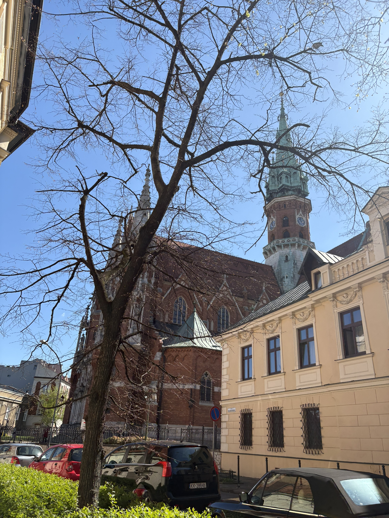 포드구제 Podgórze 지역은 크라쿠프의 한 구역인데 다리를 건너서 있는 곳이라 그런지 고립된 느낌의 조용한 동네였다. 다리 건너자마자 보이는 오래된 건물들의모습이 흐드러진 벚꽃과 버무려져 아름다웠다. 아주 한적한 분위기에 드문드문 와인바, 카페 그리고 레스토랑들이 골목길 사이로 숨겨져 있었다.