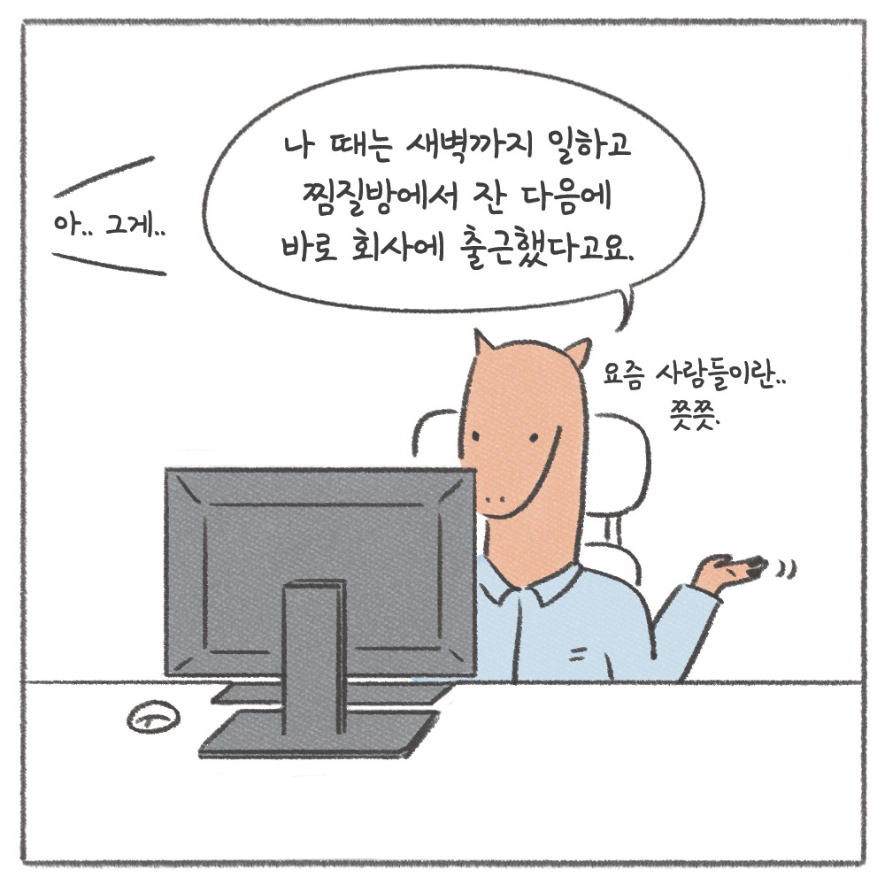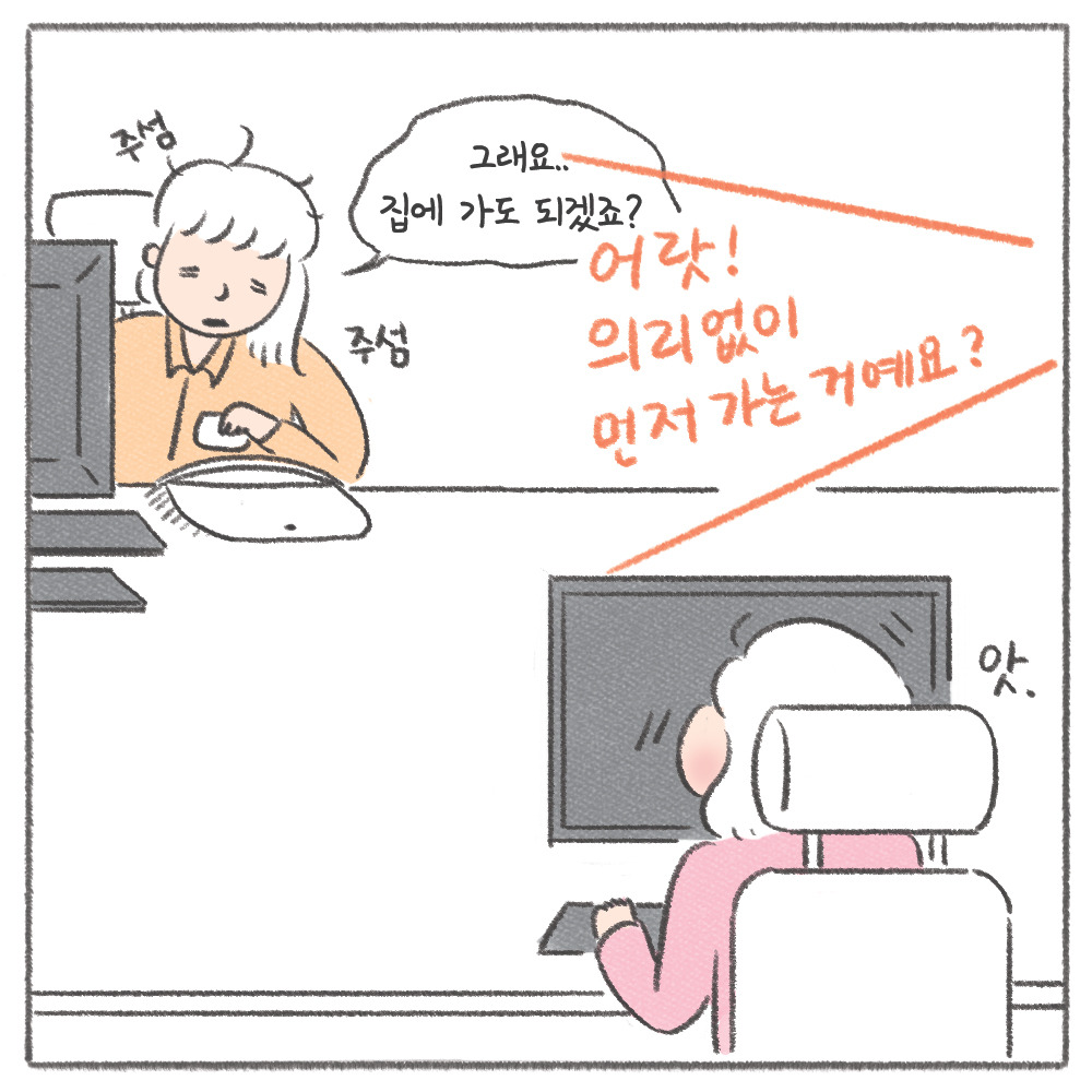 다음날 아침, 상쾌한 기분으로 얼른 일을 마치는 게