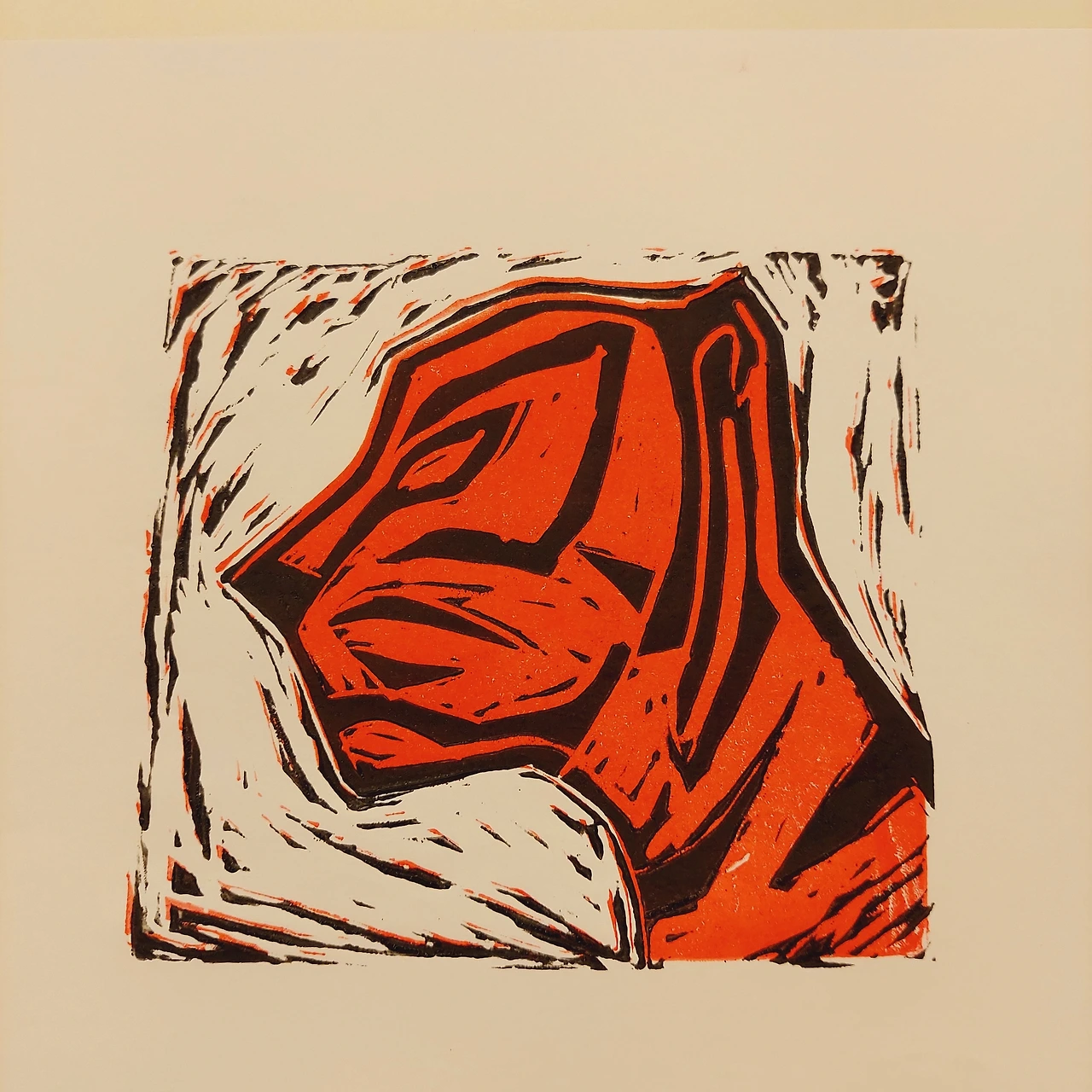 두 번째로는 이제 검은색 잉크로 호랑이의 줄무늬와 배경을 조금 파내는 일이었는데 조금 복잡해서인지 그림과는 다르게 선을 잘못 팠다. 내가 인쇄하고 싶지 않은 부분은 잉크가 묻지 않을 곳이라 많이 파내야 했는데 하다 보니 어디가 파야할 곳이고 어디가 건드리지 말아야 할 곳인지 헷갈려서 호랑이의 무늬가 생각보다 얇아지긴 했다. 배경에 공간감을 주기 위해 약간의 선도 추가했는데 이것은 딱히 계획하지 않은 부분이라 자유롭게 파내었다. 프랑스어로 애써 말할 필요가 없어서 몰입이 더 쉬웠을 수 있다.