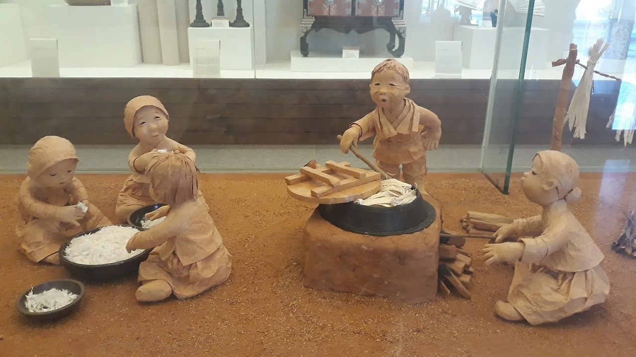 아침에 유황탕과 지장수탕에 교대로 몸을 담그니 거제에서 벌초하느라 몽긴 팔이 풀어진다. 휴대폰에는 폭염주의보 메시지가 수시로 날아들고 차를 내릴 때마다 열이 피부를 파고들지만 온천 덕분인지 끈적거리지는 않는다. 고속도로로 이동하면 대전까지 한 시간 거리지만 지방 재건을 위한 아이디어를 얻기 위해 다시 국도를 탔다. 성수기가 지난 탓인지 완산군이 의욕적으로 추진하였다는 소양 대승한지 기념관도 조용하다. 기념관에는 닥나무를 채취하여 한지를 만드는 화학반응과 물리 작용의 전 과정을 한지로 빚었는데 화학자인 내가 보아도 뛰어나다.