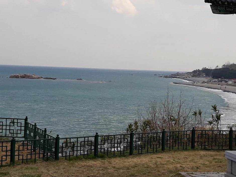 이 스마트폰의 기술시대에 굿판이라니 나는 우울했다. 건너편 언덕길로 도망치듯이 빠져나왔다. 전망 좋은 정자가 나타났다. 차를 멈췄다. 저 멀리 문무대왕암이 시야에 들어왔다. 향냄새도 북소리도 없었다. 다시 평정을 찾았다.