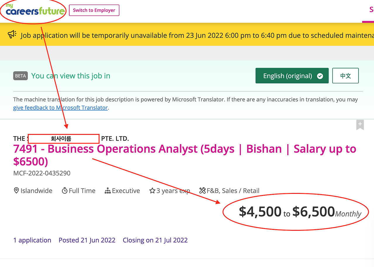 모든 과정이 끝났으면, 드디어 연봉 협상이 남았다. 한국에서는 시작할 때 주어지는 연봉 테이블이 있고, 매년 인사고과에 따라 오르는 퍼센트가 다르다면, 싱가포르는 같은 날에 같은 포지션으로 입사하더라도, 내가 어떻게 연봉 협상했는가에 따라 다른 연봉을 받게 된다. 물론, 이러한 연봉협상은 내가 가진 경력, 그리고 전 직장의 연봉, 내가 현재 받은 오퍼수, 회사가 얼마나 간절한지에 따라 매우 다르니, 어떻게 해야 된다라고 딱 말하기가 힘들다. 한 가지 팁이 있다면, 싱가포르는 로컬 채용을 우선으로 하기 위하여, 외국인을 고용하기 위해서 싱가포르 정부 사이트에 공고를 28일 올려놔야 한다. 사이트는 Mycareerfuture라는 곳인데, 구글에 mycareerfuture operator google 등을 쳐보면, 현재 구글이 올려놓은 오퍼레이터 잡 공고에 대한 예산을 대략적으로 적어놨다.