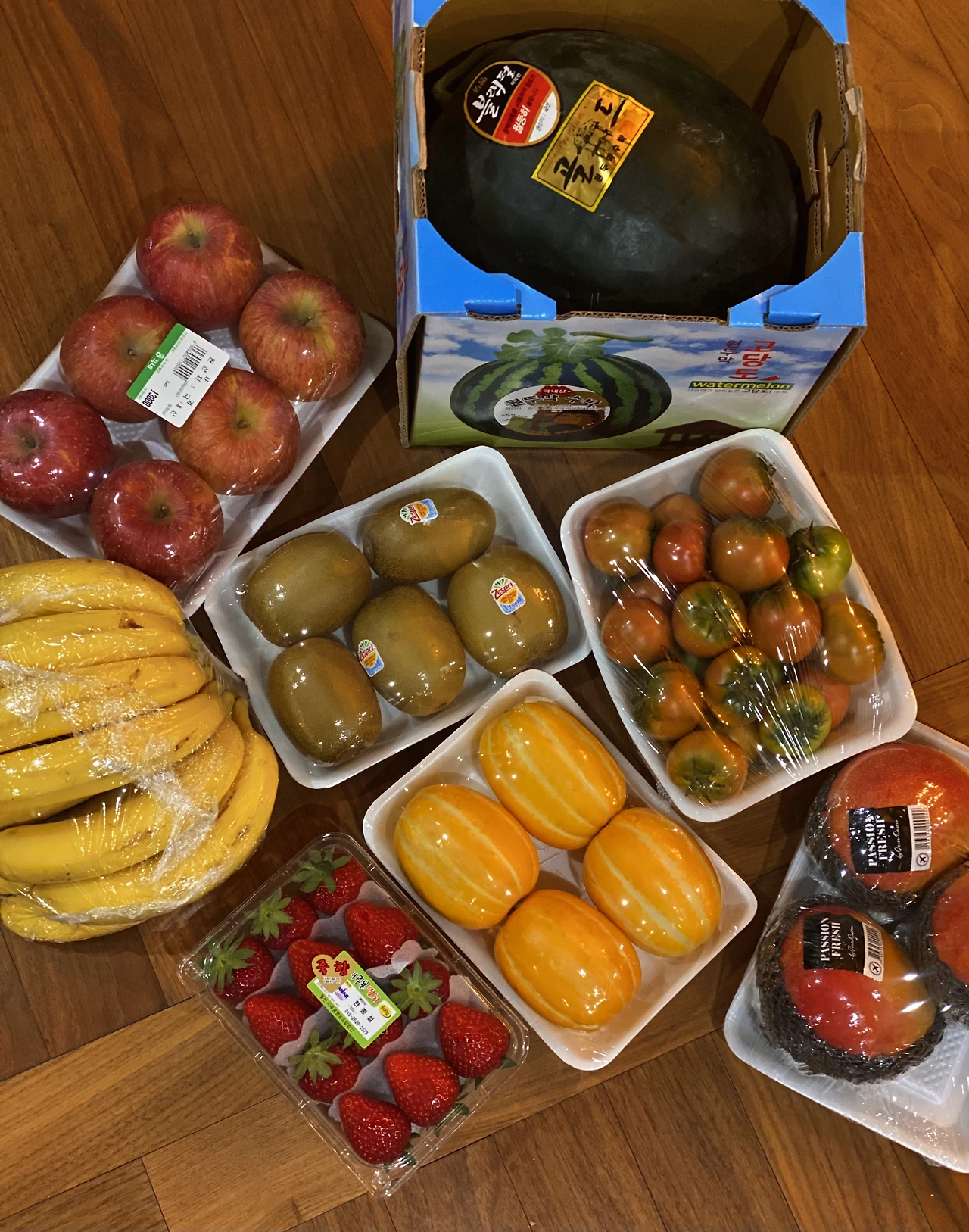 오늘 아빠 덕분에 또 다른 선물들도 잔뜩 도착하였는데, 바로 과일들이다. 온 가족이 과일을 매우 좋아해서 언제 어디서 장을 보든 가장 먼저 리스트에 적는 항목도 과일이다. 그걸 아신 아빠 지인분께서 너무 감사하게도 과일을 종류별로 가득 선물해주셨다.