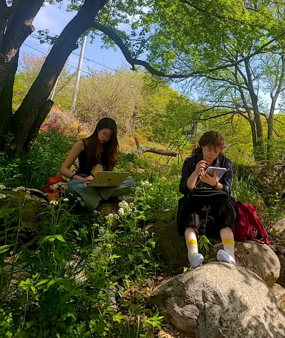 작년부터 양평의 한 마을을 터전으로 이어오던 사부작사부작 공동체의 마을과의 ‘이음’ 창작하기 위한 다양한 활동을 진행하며 일주일에 한 번은 꼭 양평을 들렸습니다. 마을 분들을 만나고 공동체에 대한 연구와 리서치를 나눴습니다. 어디든 노트북만 있으면 그곳이 사무실이 될 수 있는 일을 하다 보니, 다른 업무와 일정이 많은 날에는 오가는 차에서 그리고 계곡의 돌을 테이블 삼아 자연 속에 앉을 수 있는 곳들을 찾아 일을 하기도 했습니다.