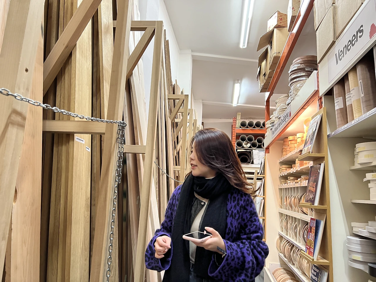 이 팝업 스토어의 준비를 위하여 내가 런던에 도착하자마자 우리 팀과 가장 먼저 현지에서 함께하게 된 일정은 두 건축가가 리서치 및 컨택을 해둔 목재 판매 목공소와 대리석 공장을 방문하는 것이었다. 높은 퀄리티의 다양한 원재료들을 직접 함께 확인하며 어떻게 팝업 공간에 놓일 것인지 이야기를 듣고 상상하다 보니, 그 완성된 모습이 점차로 더 기대되었다. 예쁜 결을 가진 나무판들을 보면서는 양평의 이음 창작소에도 이런 따스한 자연이 느껴지는 가구들이 함께 하였으면 하는 마음도 피어오르기도 했다.