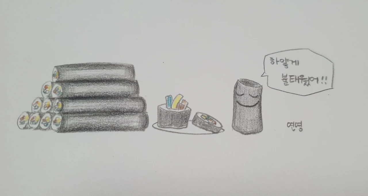 ‘식탁에 산처럼 쌓인 김밥을 보니’