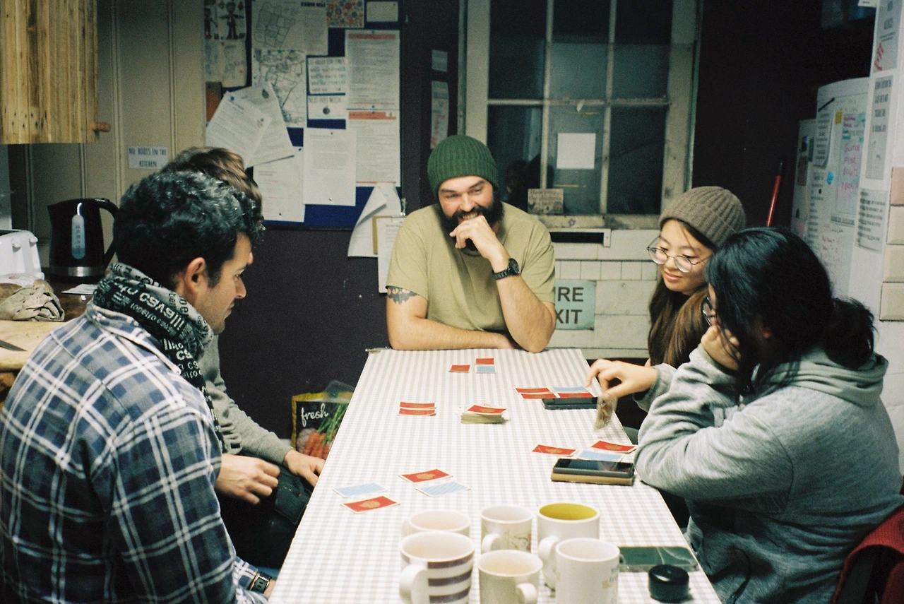 다 함께 밥을 먹고 차를 마시던 중, 브루스가 트럼프 카드를 가져왔다. 순식간에 카드 게임이 시작되었다.