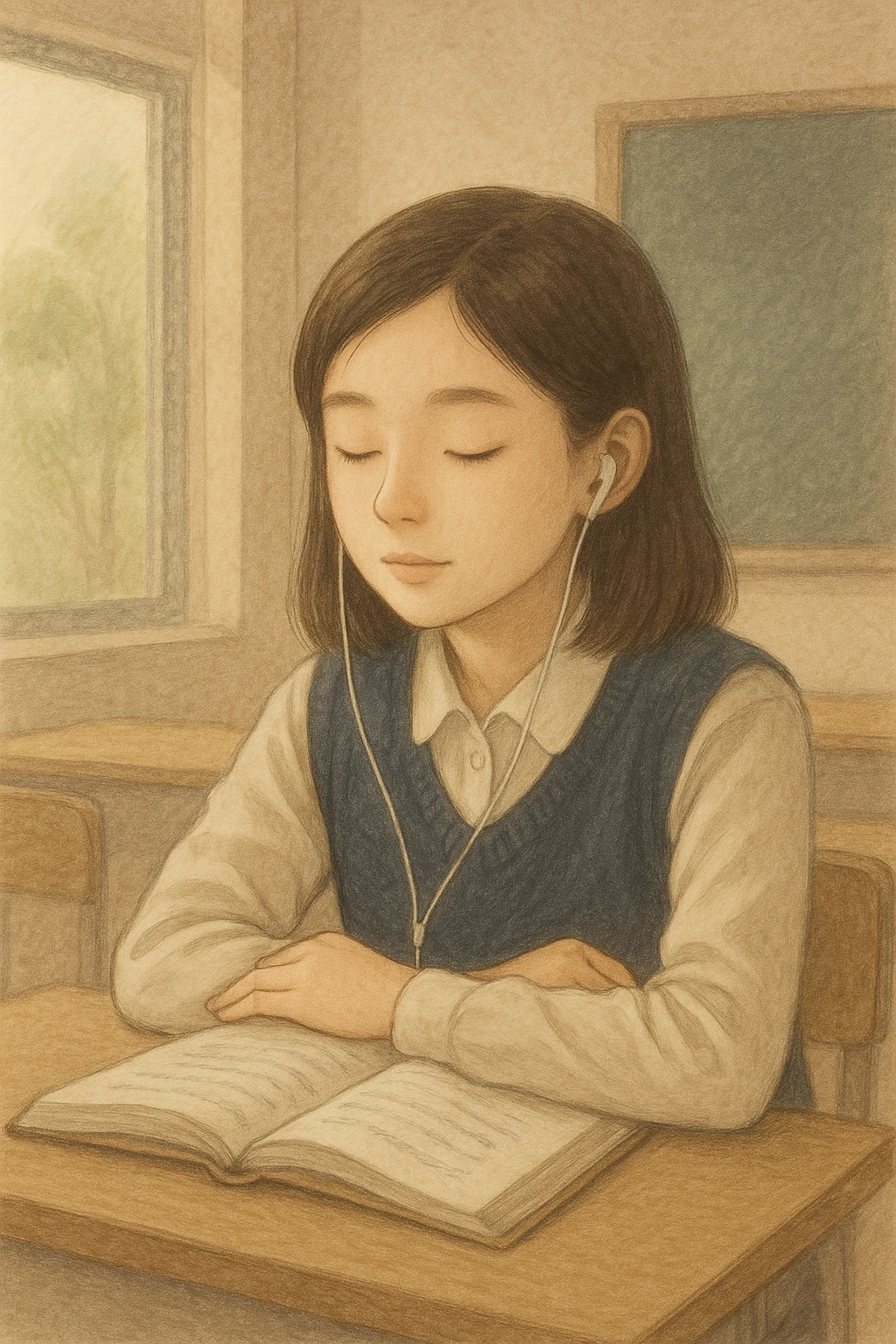 바람이 불어올 때면 도연의 시선은 칠판에서 창밖으로 옮겨졌다. 그리고 한참을 머물렀다. 십수 년 전 아련함으로 덮인 학창 시절이란 제목의 작품.