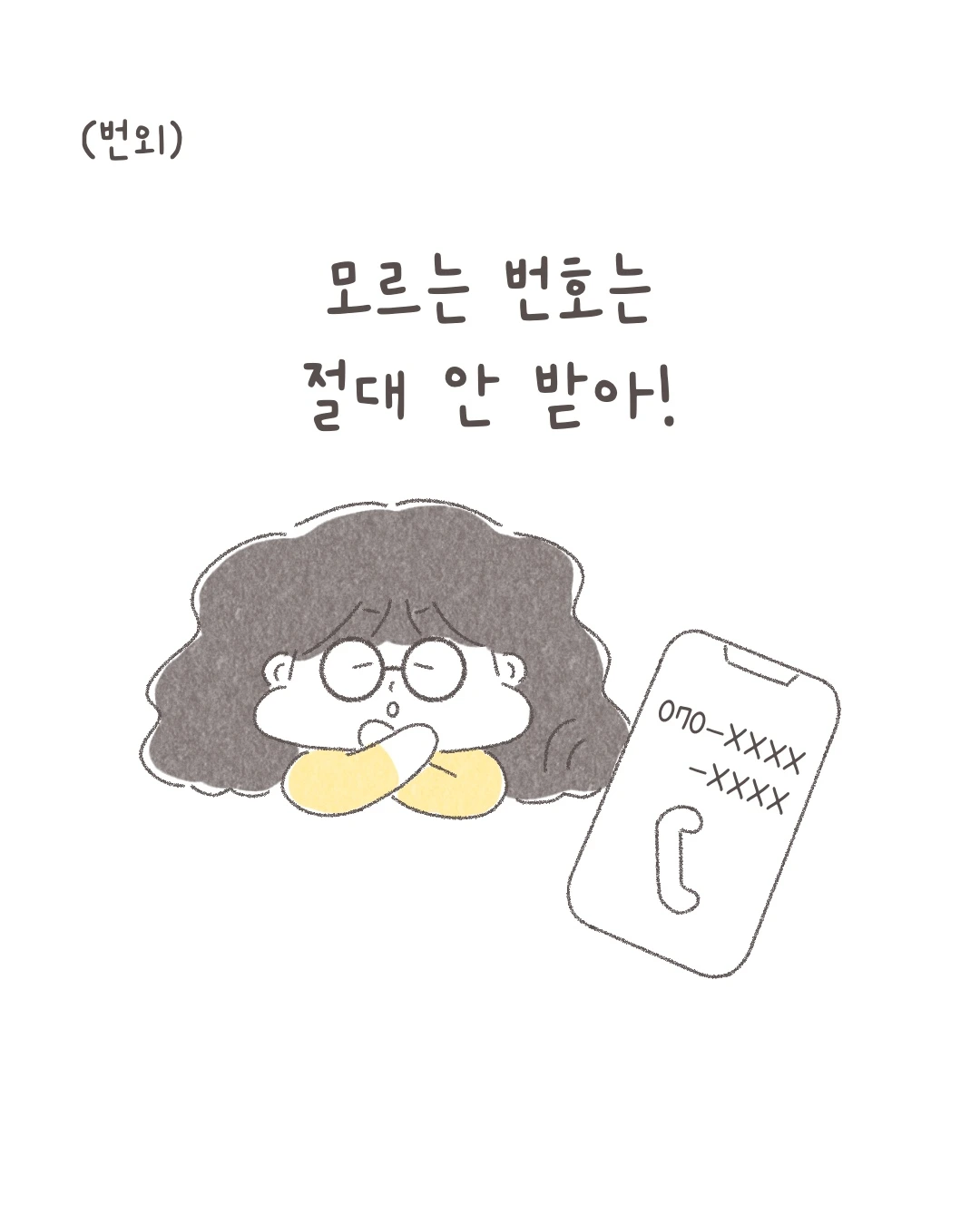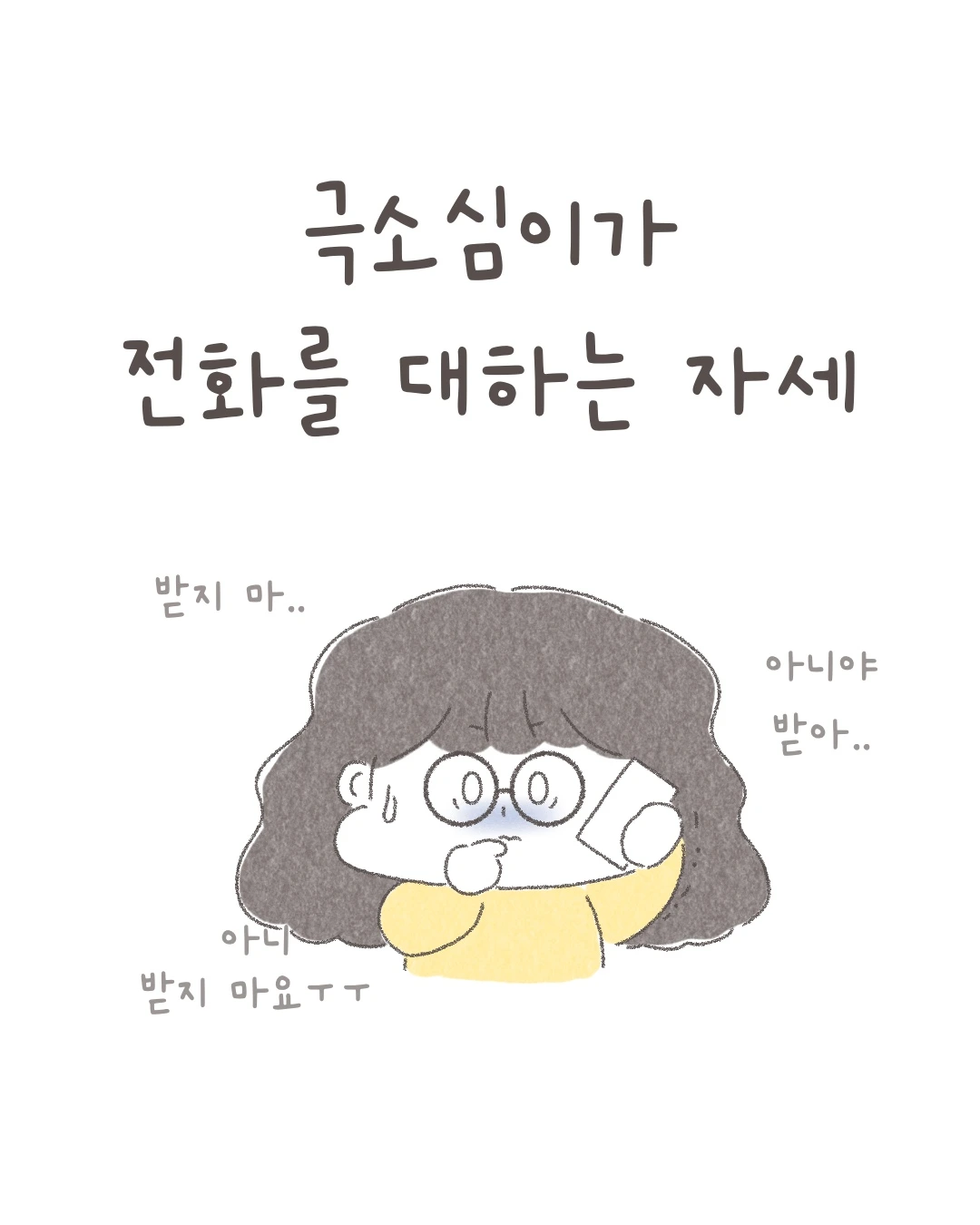 얼굴도 모르는 상대방의 가벼운 농담에 깊은 상처를 받은 어린 나. 그 후로 전화를 받는 것도, 거는 것도 두려워졌다. 전화를 걸거나 받기 전에는 심장이 쿵쾅거리고 어깨가 한껏 움츠러들었다. 과도하게 긴장한 탓에 아무 말 대잔치를 벌이고 밤마다 이불 킥을 하는 날이 수두룩했다. 그래서 전화를 회피할 수 있는 상황이면 어떻게든 도망치고 멀리했다.