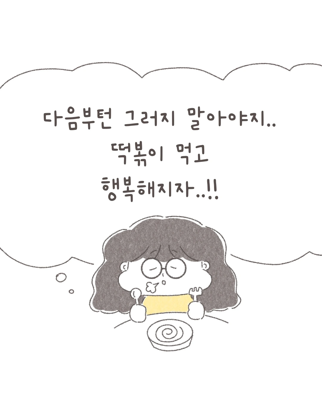 ‘그래, 다음부턴 그러지 말아야지’라고 결론을 내리며 좋아하는 떡볶이로 생각의 고리를 끊어보기로 한다. 떡볶이를 먹으며 잠시 행복했다. 아주 잠시 동안.
