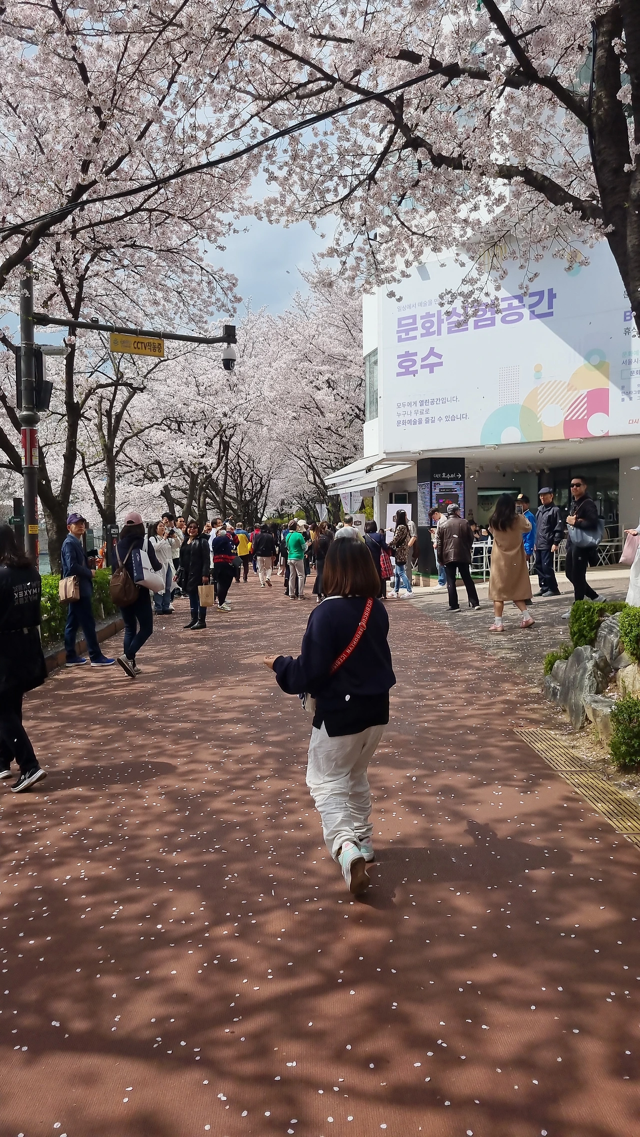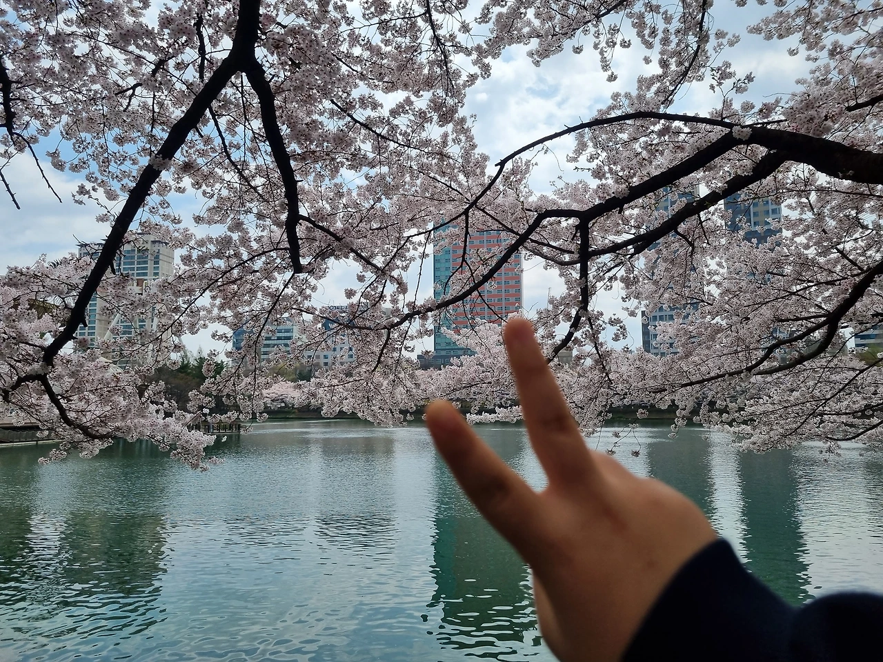 친구들과 시간을 보낸 뒤 우리는 석촌호수로 향했다. 벚꽃은 때마침 절정이었다. 꽃잎은 바람 없이 조용히 우리들 머리 위로 내려앉았다. 연극무대처럼 정교하게 짜인 장면 같아, 오히려 현실 같지 않았다.