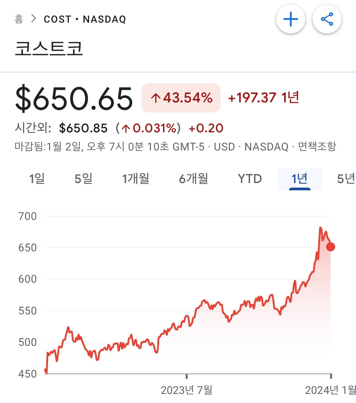 걷잡을 수 없이 올라 미친 score의 코스트코