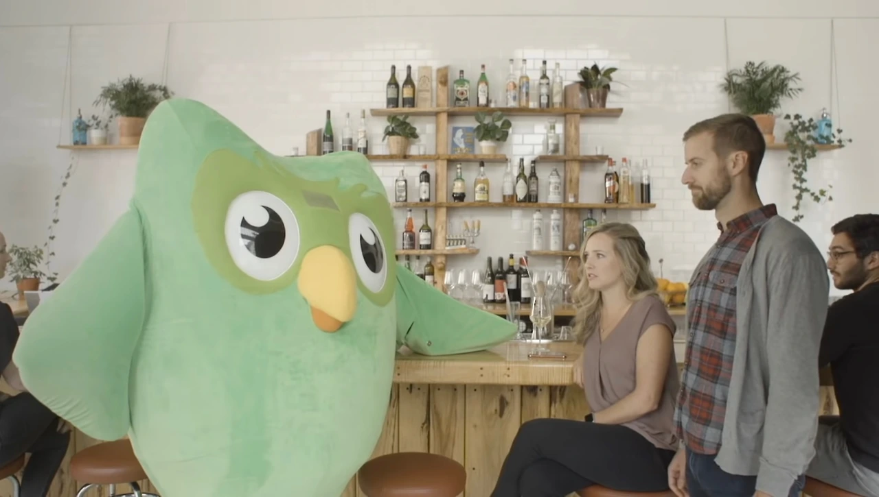 듀오링고는 게이미피케이션(게임처럼 사용자에게 재미와 보상을 제공하는 마케팅 기법)의 대표적인 성공사례로 주로 꼽힌다. 그렇지만 듀오링고라는 전설의 시작에는 틱톡이 있었다. 일하는 듀오링고 직원을 거대한 듀오 인형이 감시하는 듯한 6초짜리 짧은 영상이 입소문을 타 조회수가 말 그대로 떡상하게 되었다. 이후 인터넷의 온갖 밈을 이용해 재미있지만 진정성 있는 영상들을 만들어낸다. 이로 인해 영상 별 조회수도 100만 이상을 기록하고 듀오링고 계정의 팔로워 수가 급증하게 되었다. 이 바이럴 효과에 힘입어 앱스토어 교육 앱 순위도 1위를 계속 차지하게 된다.