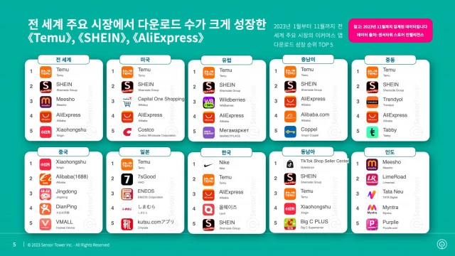 쿠팡이 창립 이후 14년 만에 첫 연간 흑자를 달성했건만 또다시 위기론을 맞고 있다. 2강 구도를 형성하던 네이버쇼핑까지 따돌리며 완벽한 1위를 목전에 두었는데도 무엇이 쿠팡을 위협한다는 말인가? 이른바 '알테쉬'라고 불리는 중국의 e커머스 플랫폼 알리익스프레스, 테무, 쉬인 등이 한국 진출을 본격화하면서 쿠팡의 자리를 위협할 수 있다는 것이다. 우리나라만의 이야기가 아니다. 실제로 지난해 미국을 비롯하여 유럽, 일본, 한국 등 세계 주요 국가에서 가장 많이 다운로드된 모바일 앱은 바로 '테무'였다. 앞서 진출한 알리 익스프레스에 이어 테무 역시 각 국의 e커머스 시장에 진격하면서 중국의 e커머스 플랫폼들이 전 세계 유통, 광고 시장을 뒤흔들고 있다.