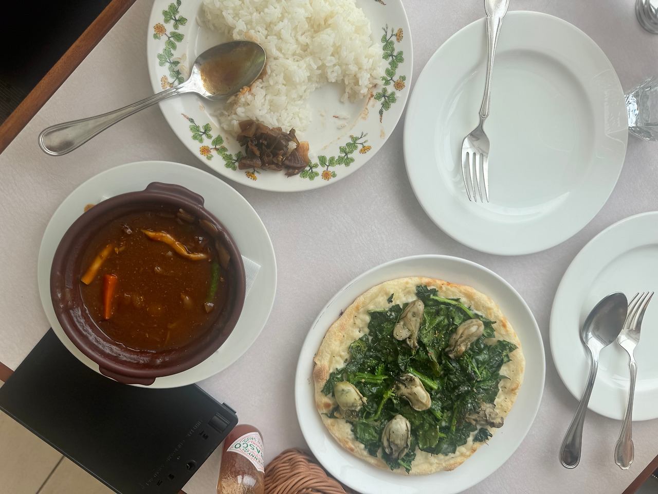 일본에서 방문한 두 번째 양식집. 고기스튜와 굴피자를 주문했다. 굴 비린내가 전혀 나지 않았다. 일본은 대체적으로 해산물 요리에 능한듯 하다. 식당에서 식사를 하는 한 시간 정도 동안 두 번의 생일파티가 벌어졌다. 직원들이 테이블 하나를 둘러싸고 생일축하 노래를 불러주었는데, 아카펠라 수준의 가창력이어서 무척 놀랐던 기억이 있다. 그리고 내가 앉아 있던 테이블 뒤에 아기 둘을 데리고 오신 어머니가 계셨다. 아이들은 5-6세 정도 되어보였는데, 자꾸 식기로 장난을 치자 어머니가 단호하게 혼내고 있었다. 일본어는 항상 상냥하다고만 생각했는데, 어머니의 일본어는 강하기도 했다.