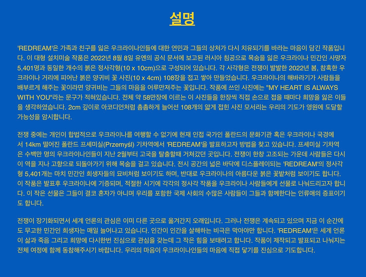 폴란드에 있는 우크라이나 난민 캠프에서 5401 작품을 전시하고 작품을 나눌 예정이다.