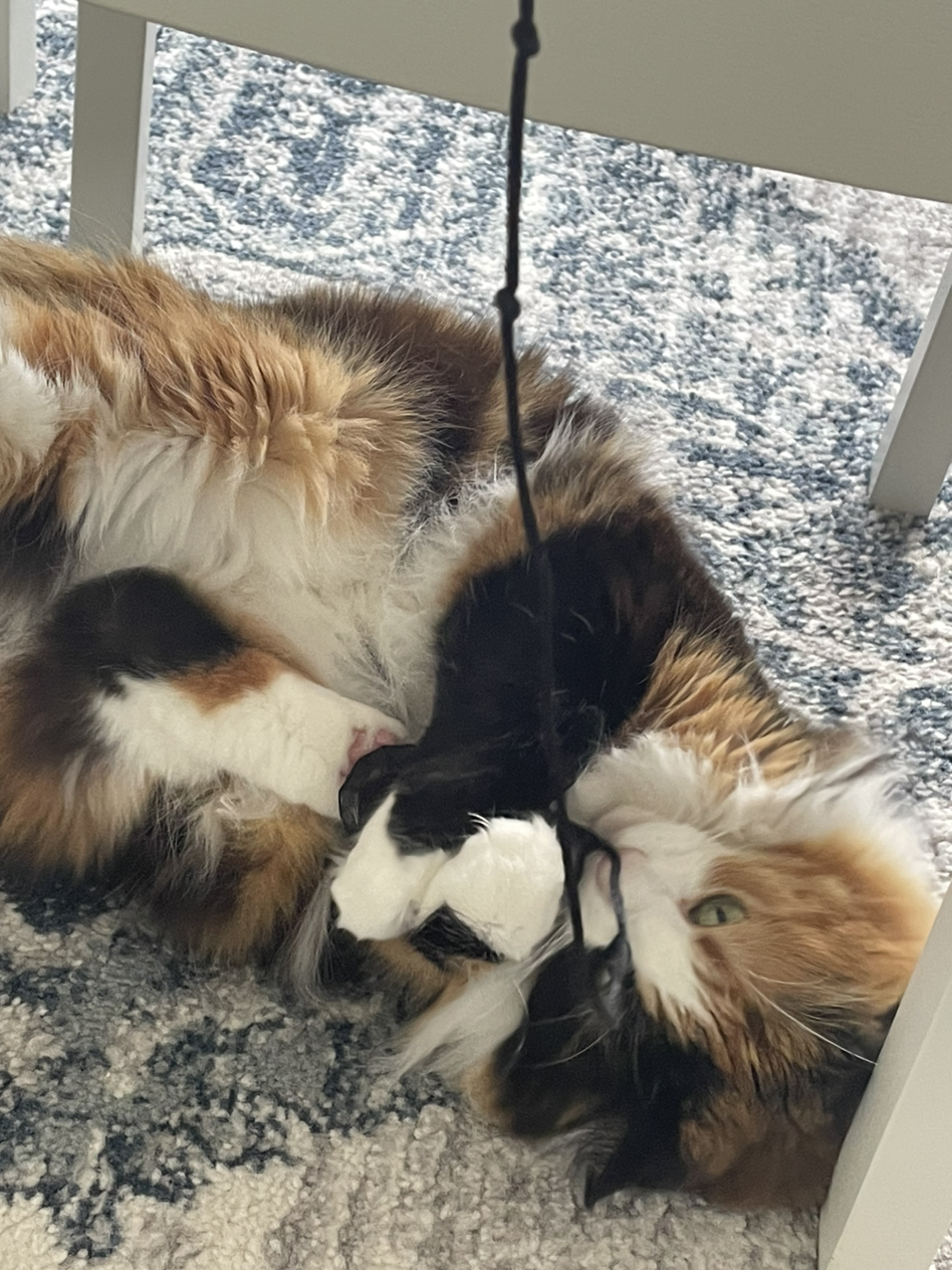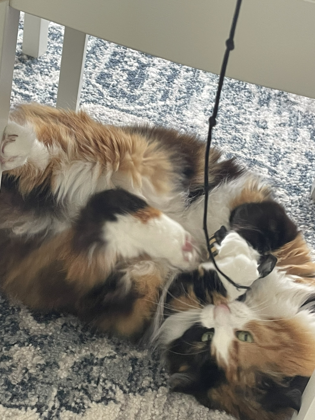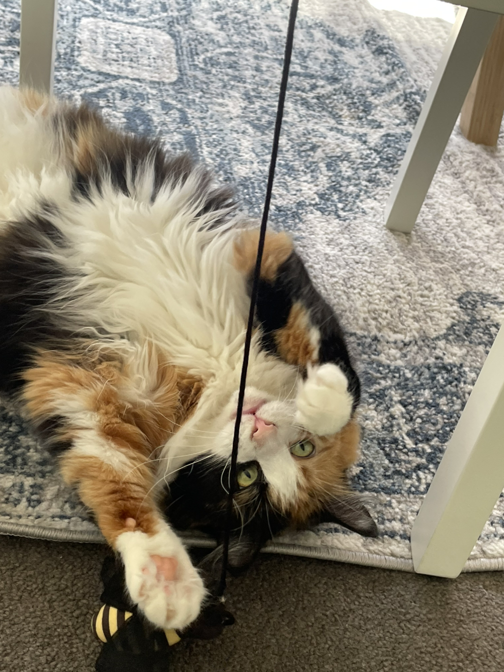 우리 집은 거실이 동남 방향이라 해가 굉장히 잘 들어온다. 아침에 거실로 햇살이 한 움큼 들어올 때 이비는 유독 해가 잘 들어오는 러그 위에서 몸을 이리저리 뒹굴며 좋아서 어찌할 바를 모른다는 듯이 뜨거운 햇살을 즐긴다. 이때 이비가 좋아하는 장난감을 던져 주면 장난감을 끌어안고 뒷발차기를 하며 신나게 논다.