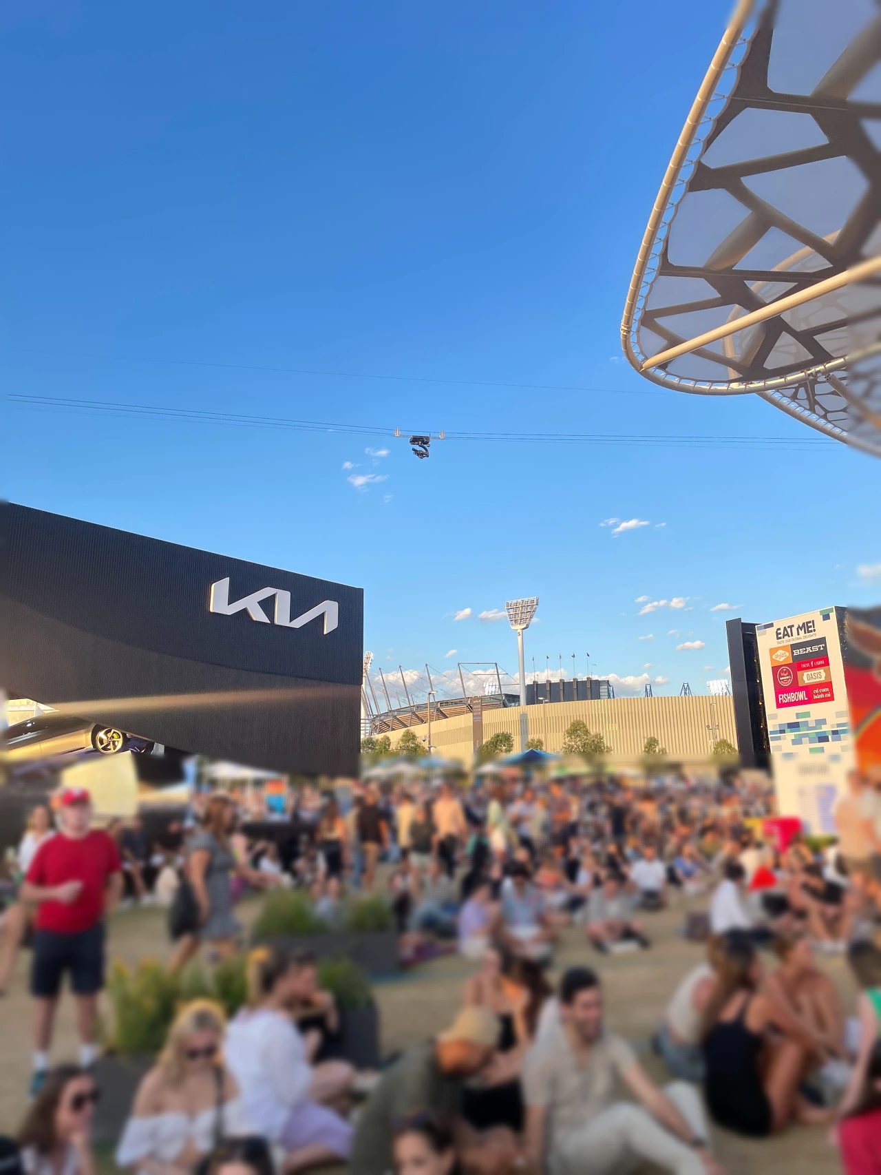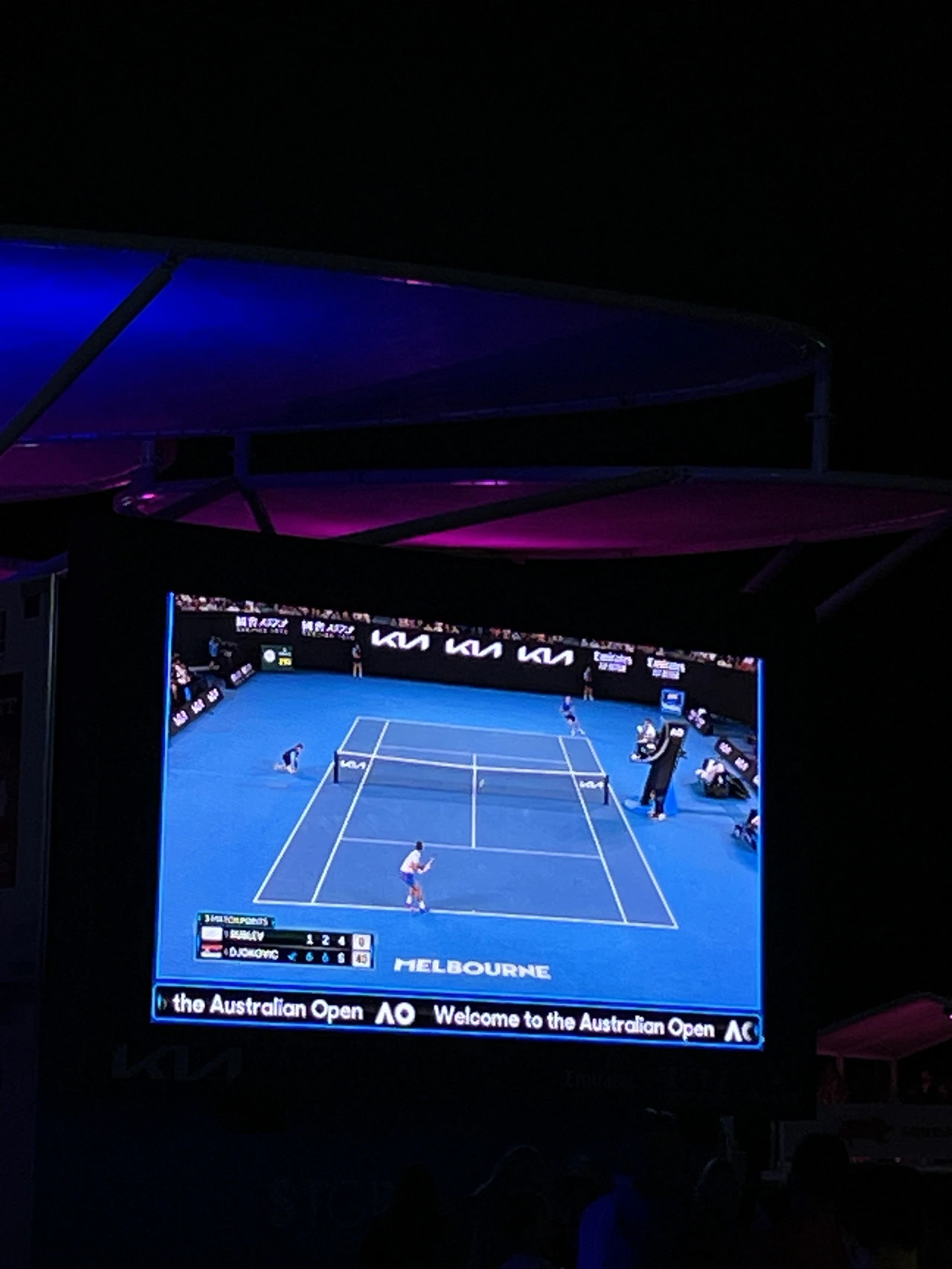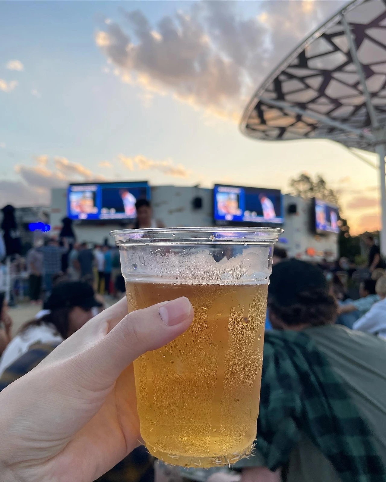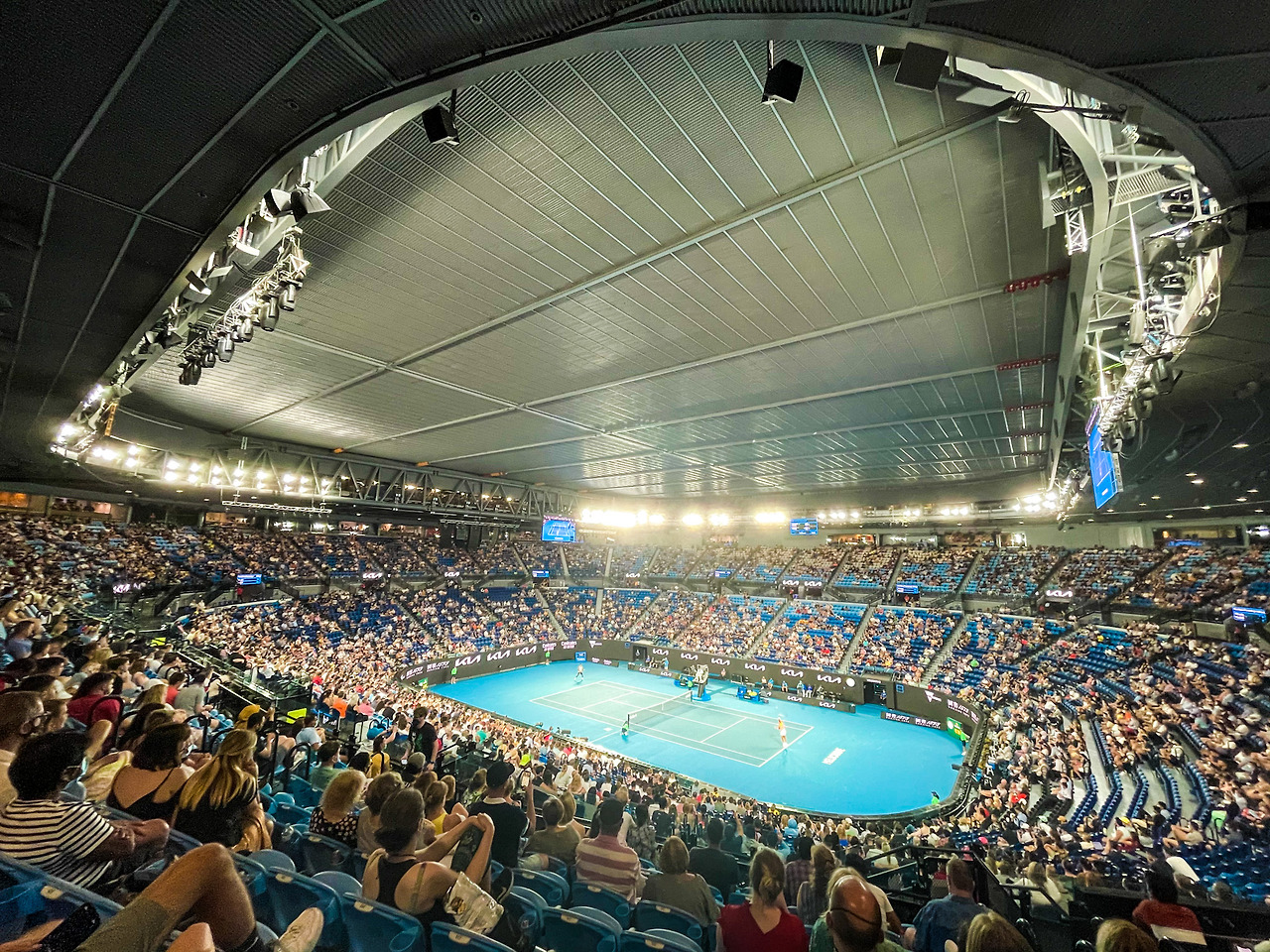 야외에는 큰 전광판으로 관람할 수 있는 공간이 있고 음식을 사 먹을 수 있는 푸드 코트가 있으며 펍이 마련되어 있다. 푸드 코트를 중심으로 테이블과 의자가 많이 놓여 있고 잔디밭에 앉아서 마치 소풍처럼 즐길 수도 있다. 테니스를 볼 수 있는 전광판이 많기 때문에 적당한 자리를 골라 앉으면 된다. 이게 나의 첫 AO 경험이었다.