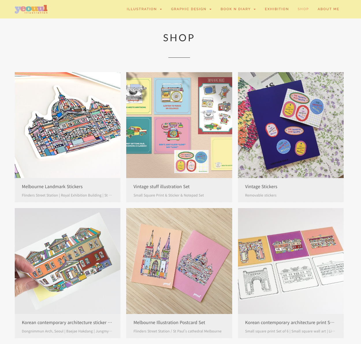 이제 다음은 온라인샵 오픈이다. 이건 나의 개인적인 생각이지만 호주 일러스트레이터들을 연구해 본 결과 10명 중의 9명은 *Etsy 혹은 개인 온라인 샵이 있었다. 온라인 샵이 없으면 어디서 일러스트레이터라고 말도 못 내밀 것 같았다. 개인 온라인 샵보다는 당장 물품 하나라도 등록할 수 있는 Etsy를 시작하기로 했다.