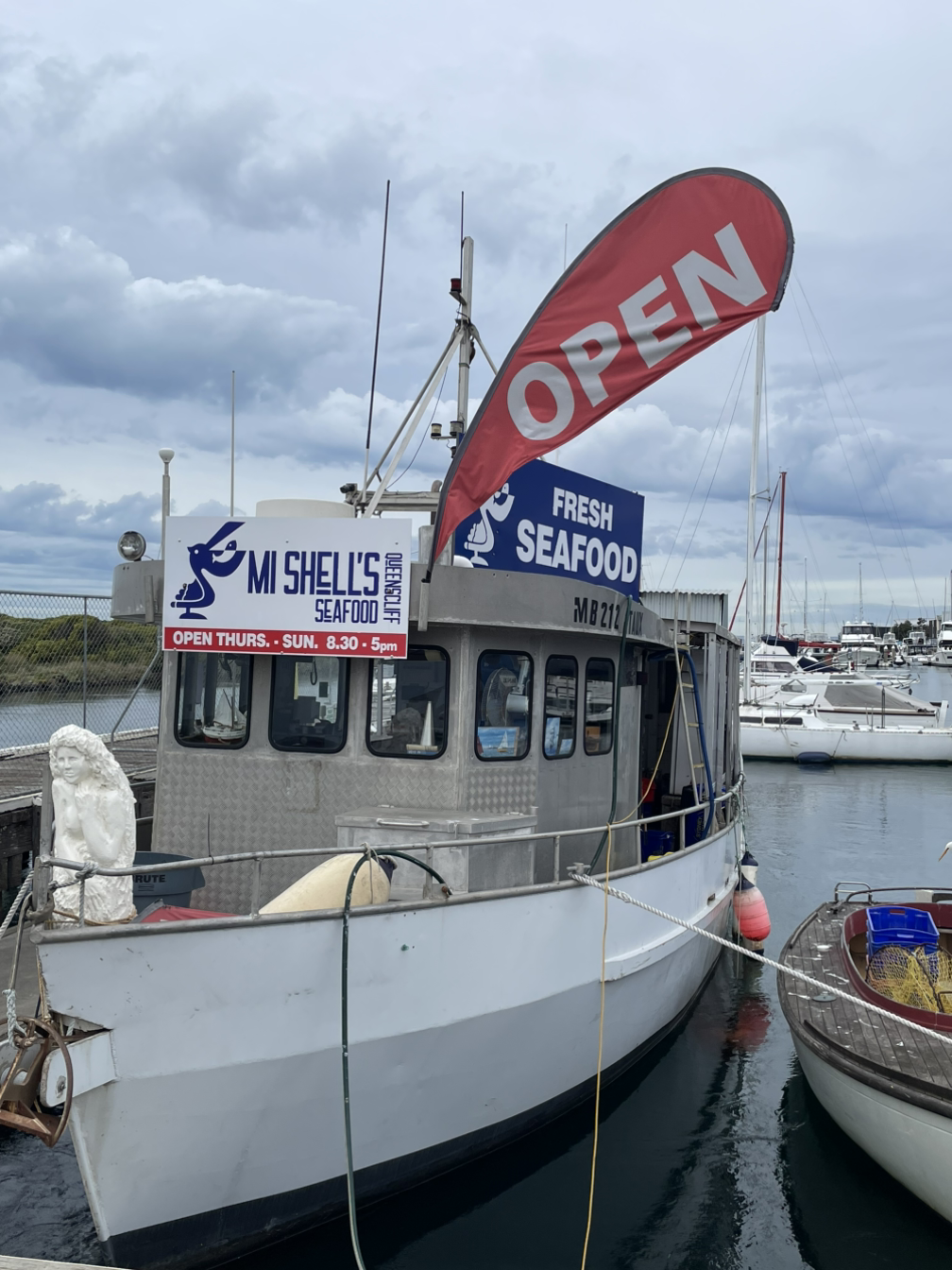 구글 지도에서 해산물(seafood)을 검색해 보니 퀸스클리프 바닷가에 위치한 'Mi Shells Seafood' 해산물 가게가 나왔다. 사진 리뷰를 보니 신기하게도 요트 선착장에 있는 요트에서 해산물을 판매하고 있었다. 처음에는 약간 의심을 품었지만, 구글 지도에 사진과 리뷰가 올라와 있으니 가보면 알 거라는 믿음을 가지고 지도를 따라가 보았다.