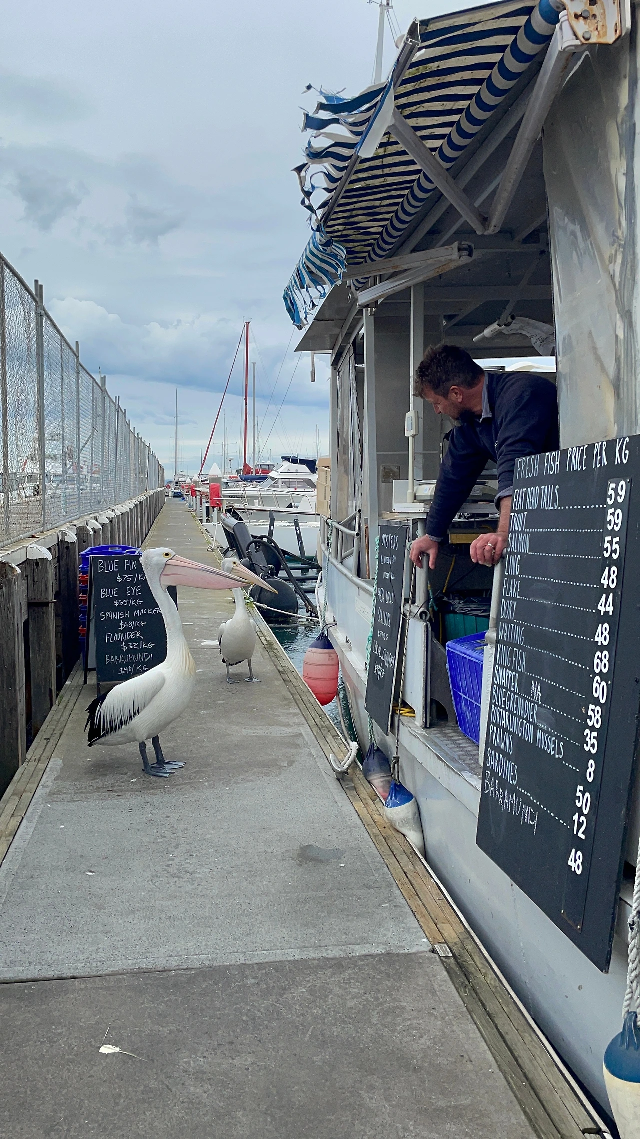 해안가를 산책하며 걷다 보니 수많은 요트가 줄지어 있는 선착장이 있었고 'Mi Shells Seafood' 간판이 걸려 있는 요트를 발견할 수 있었다. 그런데 우리는 누구 하나 선뜻 먼저 요트에 다가가지 못했다. 엄청나게 큰 펠리컨들이 요트 근처를 서성이고 있었기 때문이었다. 만화 속에서나 보던 귀여운 펠리컨 이미지와는 달리 당장 뭐라도 삼켜버릴 듯한 매우 큰 부리를 자랑하고 있었다.