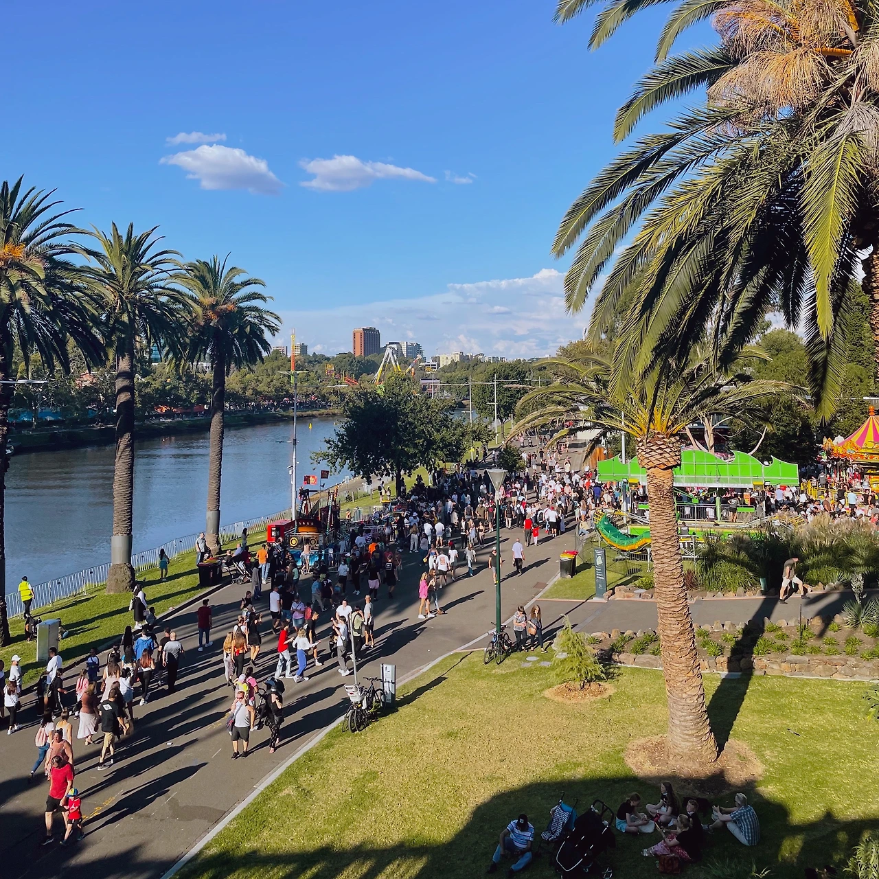 내가 멜버른을 좋아하는 이유 중 하나는 페스티벌이다. 멜버른에는 많은 축제가 열린다. 음악, 음식, 문화 등을 주제로 다양한 축제가 항상 가득하다. 매년 열리는 축제지만 매번 놀란다. 잔디밭 밖에 없던 공원에 큰 놀이기구를 어떻게 옮기는지 매번 신기하다. 외국 드라마를 볼 때 동네에 카니발이 열려 가족, 연인들이 축제에서 놀이기구와 게임, 서커스 등을 즐기는 장면을 한 번쯤 봤을 것이다. 그와 비슷한 분위기의 페스티벌이다.