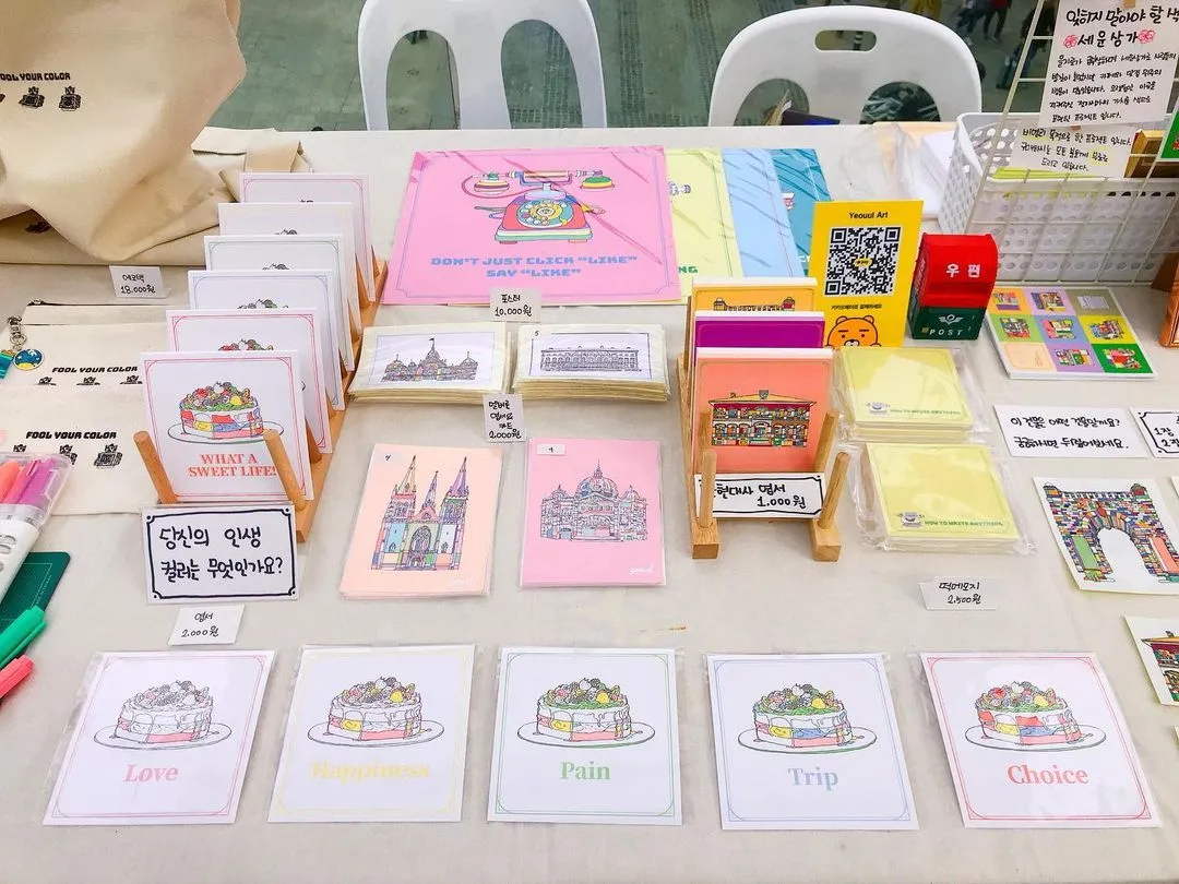 나는 한국에 있었을 때 스튜디오를 운영하며 가끔 플리마켓 행사에 참여하였다. 나의 일러스트를 직접 대중에게 선보이며 소통할 기회였다. 나는 작업을 할 때 작품에 모두 메시지를 담는다. 그래서 플리마켓에 참여할 때 사람들과 마주 보고 작품에 관해 설명할 수 있다는 점이 좋았다. 그리고 때론 사람들이 직접 예술적 활동에 참여하고 이에 공감할 때 나는 많은 에너지를 얻었다.