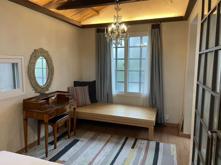 우리가 묵은 방은 창성장 별채이다. 창성장 공간은 근현대적이고 고풍스러웠다. 이곳의 작은 소품과 구석진 공간까지 모두 신경 쓴 흔적이 보였다. 창성장 2층은 주황색과 빨간색의 붉고 강렬한 색으로 뒤덮여 있었다. 공간의 색에 매료되고 인테리어 소품에 한 번 더 빠져드는 숙소였다.
