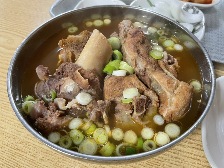 여기 뼈해장국은 내가 상상한 맛과는 달랐다. 마치 며칠 내내 끓이고 마지막 한 그릇 남은 소고기 뭇국의 맛이랄까. 그렇지만 짜진 않고 담백한 그런 느낌이었다. 자극적이지 않으며 군더더기 없는 맛이었다. 그리고 또 하나 기억에 남는 건 살코기가 잔뜩 붙은 뼈였다. 뼈에 붙은 살코기를 발라 먹다 보니 어느새 배가 차서 밥도 다 먹지 못했다. 그렇지만 국물은 거의 다 먹었다. 이른 아침부터 KTX를 타고 목포 터미널에 내려 비를 맞아 찌뿌둥해진 몸이 스르르 풀리는 기분이었다.