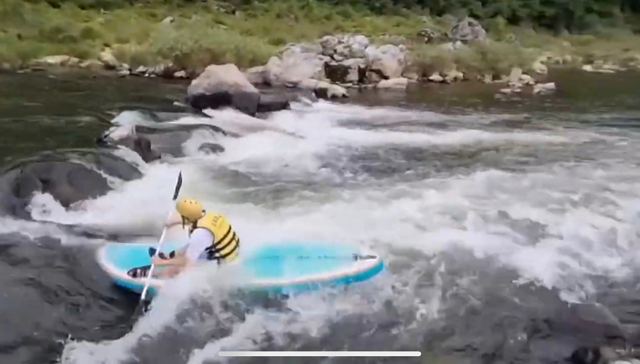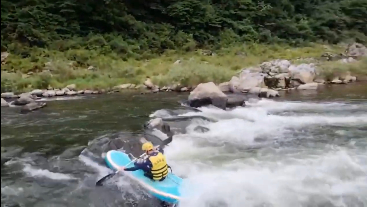 삼촌, 아버지, 오빠 순대대로 한 명씩 떠내려가고 그다음에 사장님 패들보드 뒤에 탄 어머니와 내가 따라서 내려갔다. 물살이 센 구간에는 패들보드가 뒤집히기도 하고 방향 조절이 생각보다 어렵다고 하셨다. 그래서인지 혼자 패들보드를 조절해야 했던 아버지와 삼촌, 오빠는 자꾸 바위 어딘가로 부딪혀서 혼자 헤매는 모습을 볼 수 있었다. 그럴 때마다 사장님이 가서 도와주셨다.