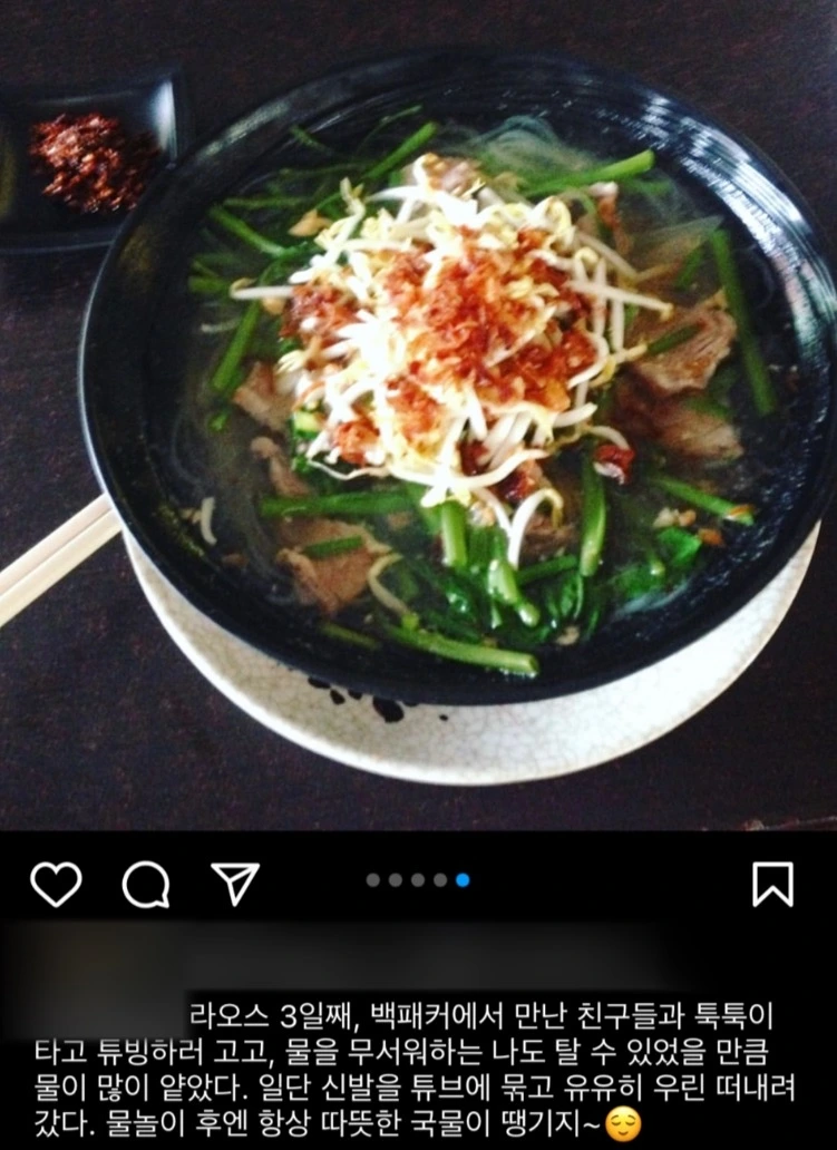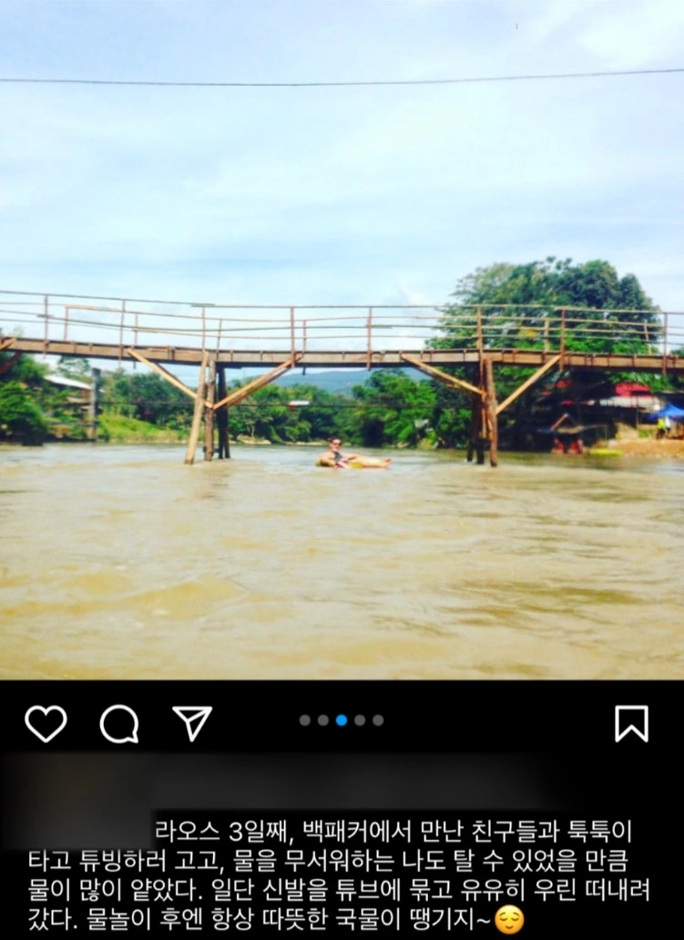 내가 이렇게까지 말하니 라오스의 자연경관이 궁금할 것이다. 그런데 너무나도 슬픈 사연이 있다. 홀로 떠난 5박 6일 라오스 배낭여행의 추억을 생생하게 담은 핸드폰을 라오스에서 분실해 버렸다. 참으로 어이없는 사연이다. 한국으로 돌아가는 비행기를 탈 때 타기 전만 해도 핸드폰이 있었는데 비행기에 탑승하고 자리에 앉으니 핸드폰이 사라졌다. 그렇게 나의 라오스 여행 사진의 절반이 사라졌다. 다행히도 그때 당시 디카를 가져가서 라오스 여행 사진과 동영상이 어느 정도는 남아있다. 그런데 튜빙 할 때는 핸드폰을 방수팩에 넣어 촬영했기에 튜빙의 추억은 그날 SNS에 업로드했던 사진 몇 장뿐이다.