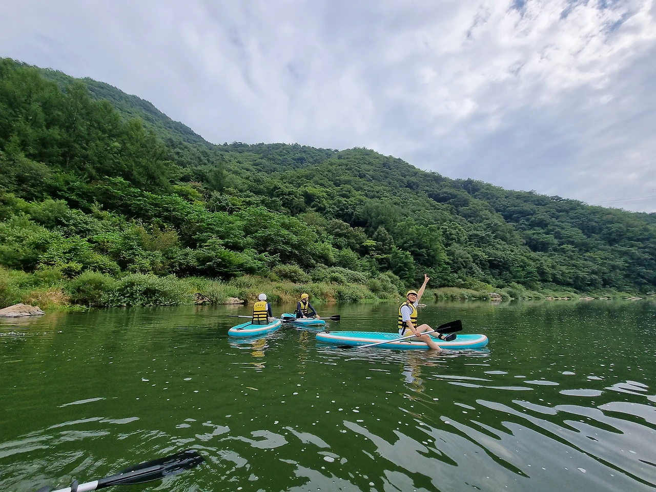 가족 여행으로 평창에 있는 글램핑장에 갔다. 글램핑장에는 다양한 액티비티가 있었고 우리는 그중에 패들보드를 타기로 했다. 8월 말 여름의 끝자락 날씨는 구름이 많고 흐렸다.