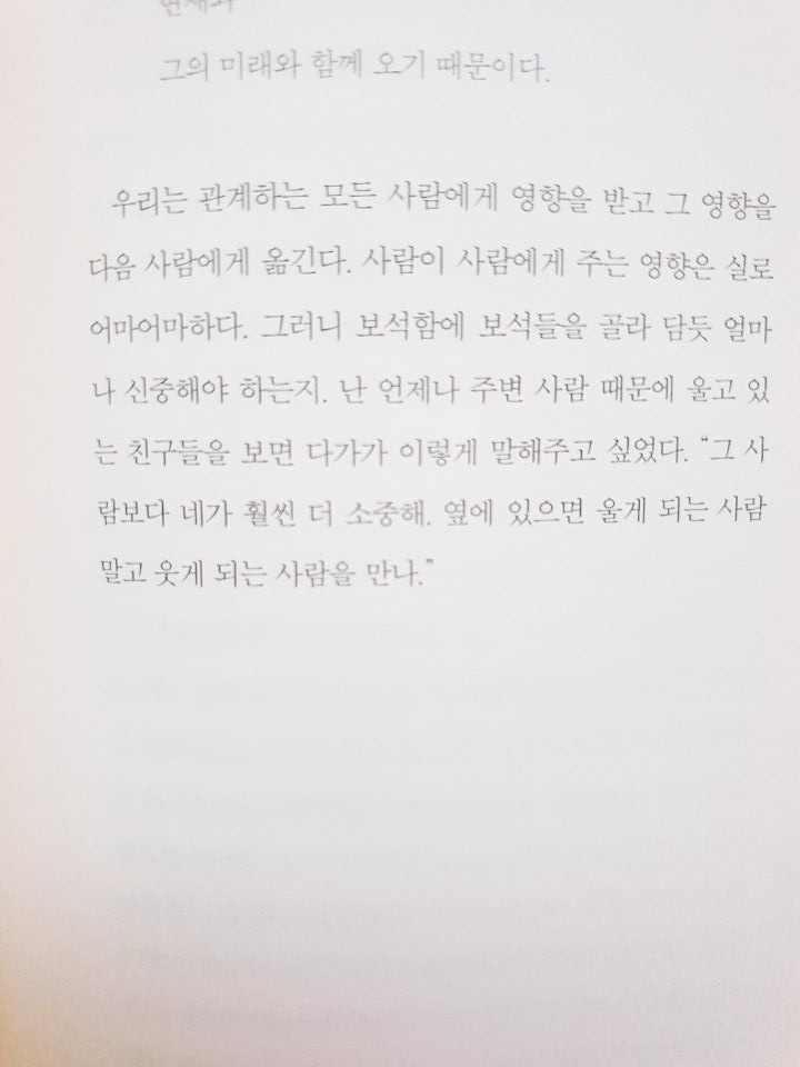 글에도 나와있듯 우리는 관계하는 모든 사람에게 영향을 받는다. 나 역시도 그랬다. 직장생활을 하면서 동료든 선배든 후배든, 내 간호를 받는 환자든, 보호자든. 일하는 몇 년 동안 참 많은 사람들을 만났다. 그동안 짧은 시간에도 내게 좋은 영향을 주는 사람이 있었고 최악이었던 사람도 있었다.