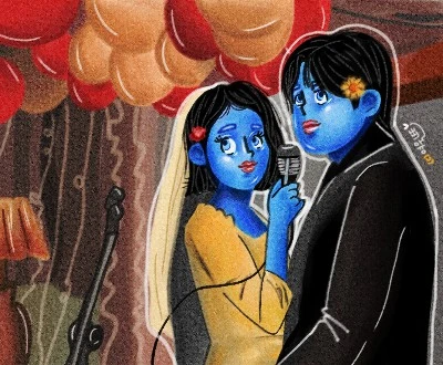 사랑의 기쁨으로 가득 찬 주인공들을 향해