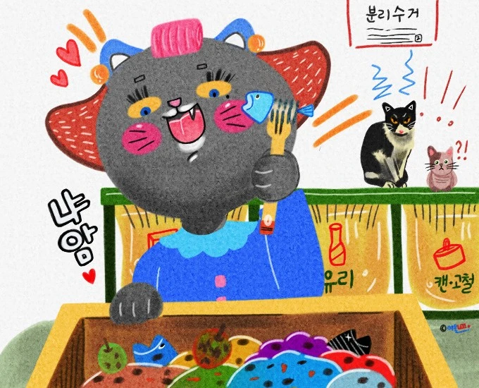 ‘오늘은 어떤 음식들이 가득 있을까, 냐냥!‘