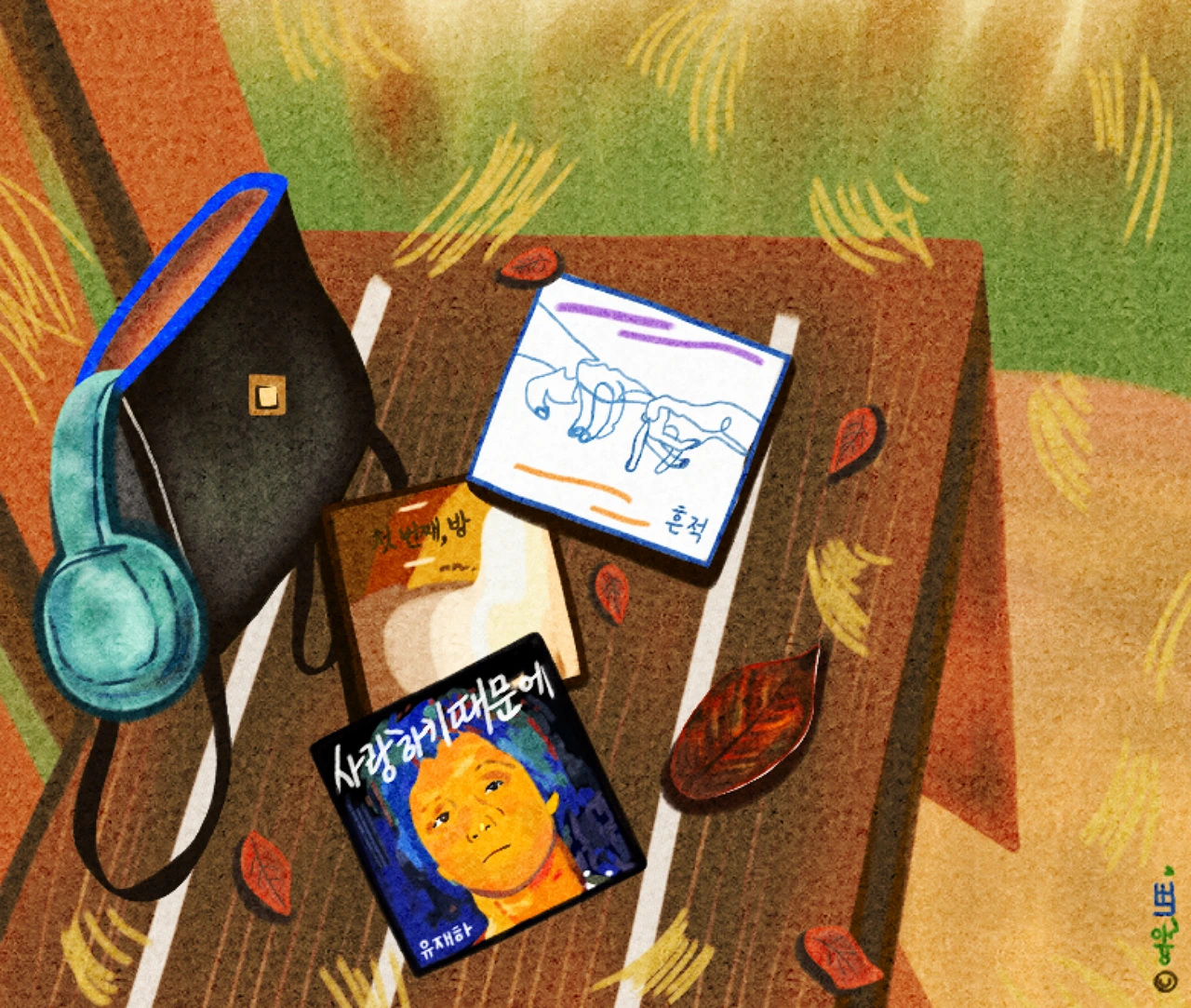 즐겨 듣던 노래가 추억과 쏟아져 나오던 사이,