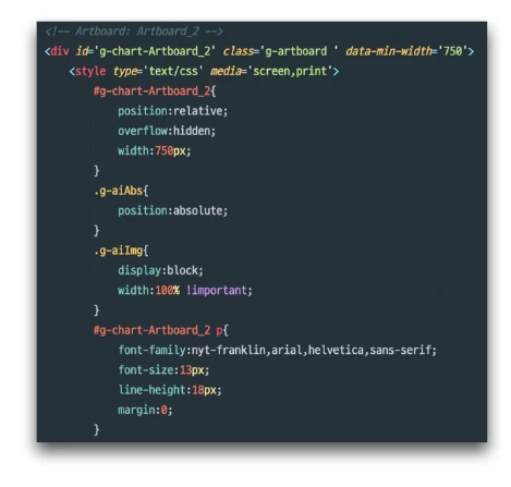 간단하게 요약하면 일러스트레이터 artboard 위에서 모든 디자인 작업을 한다. 웹, 태블릿, 모바일 각각 제작한다면 3개의 artboard를 세팅하고 width px값을 설정해준다. 다음, sciprt의 도움을 받아서 클릭하면 별도의 폴더가 생성되며 html 문서가 생기고 반응형 javascript를 엮어주면 끝이다. (말만 하면 너무 쉽다?!)